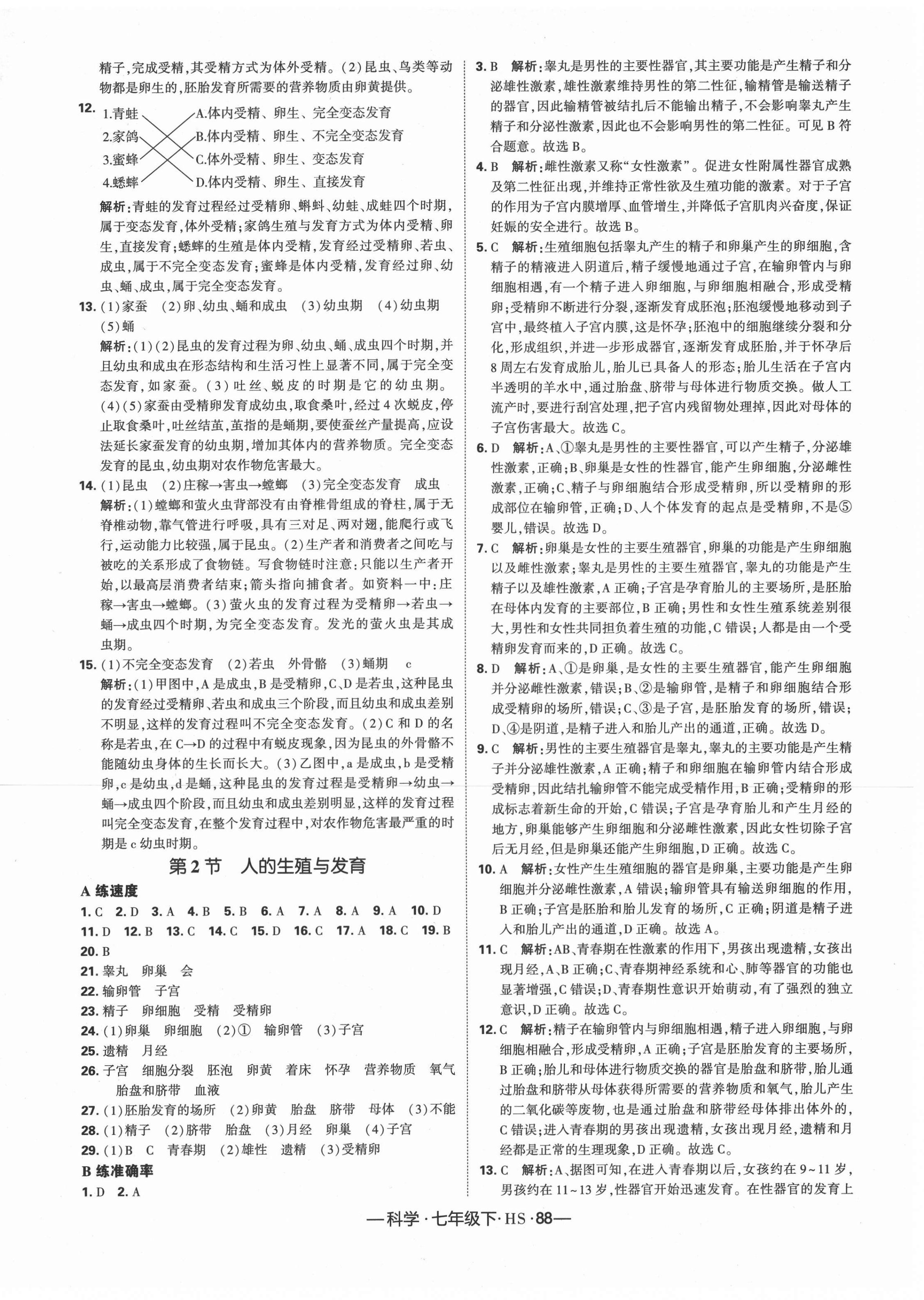 2021年学霸课时作业七年级科学下册华师大版