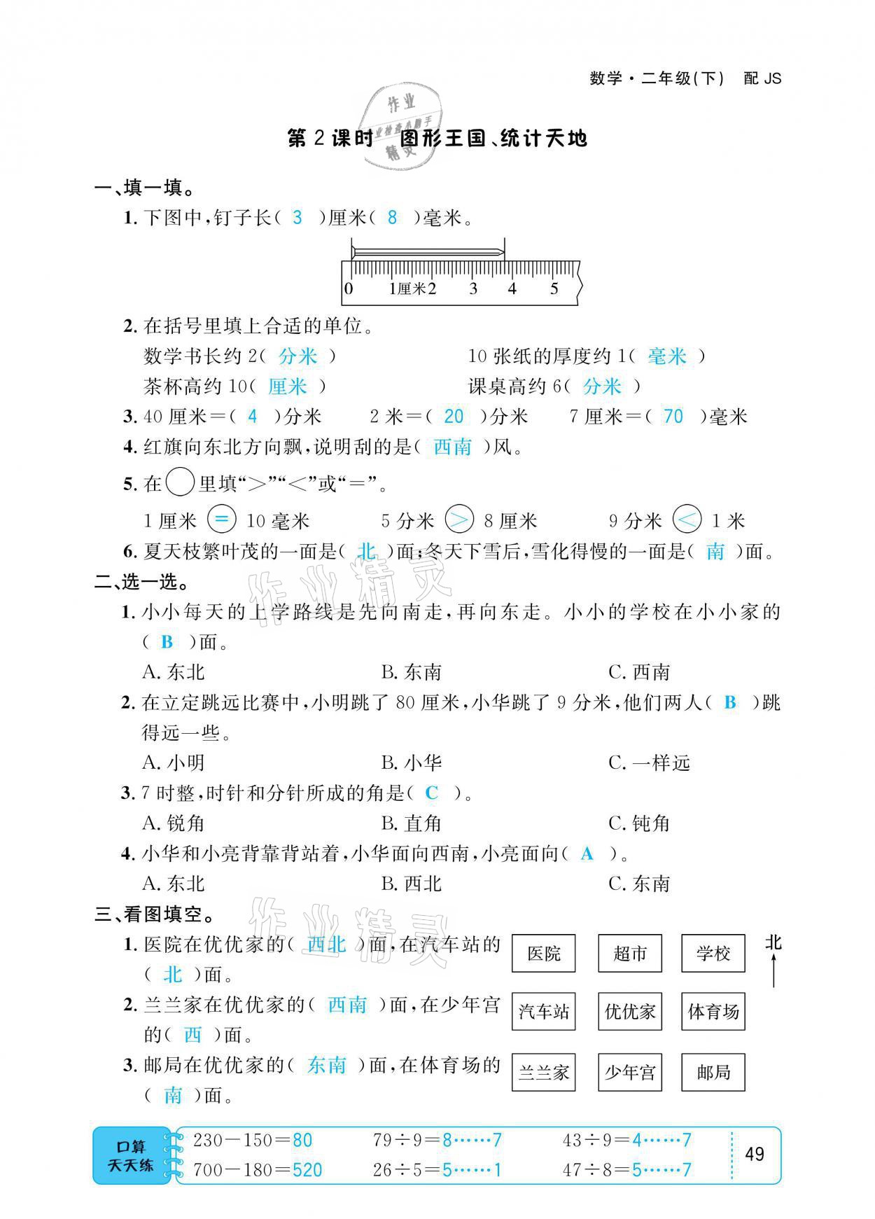 注:目前有些书本章节名称可能整理的还不是很完善,但都是按照顺序排列的,请同学们按照顺序仔细查找。练习册 2021年小学1课3练培优作业本二年级数学下册江苏版 答案主要是用来给同学们做完题方便对答案用的,请勿直接抄袭。