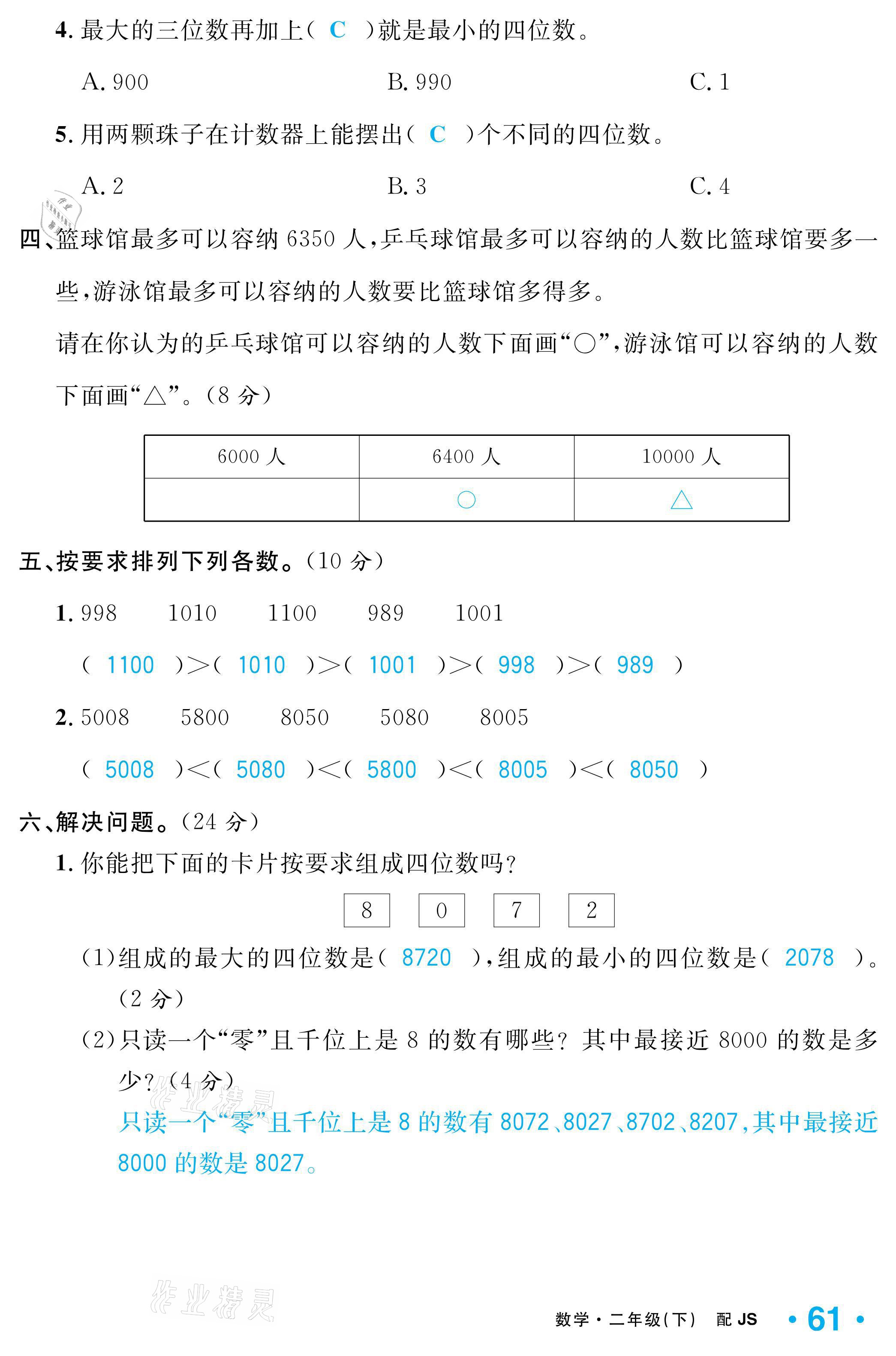 注:目前有些书本章节名称可能整理的还不是很完善,但都是按照顺序排列的,请同学们按照顺序仔细查找。练习册 2021年小学1课3练培优作业本二年级数学下册江苏版 答案主要是用来给同学们做完题方便对答案用的,请勿直接抄袭。