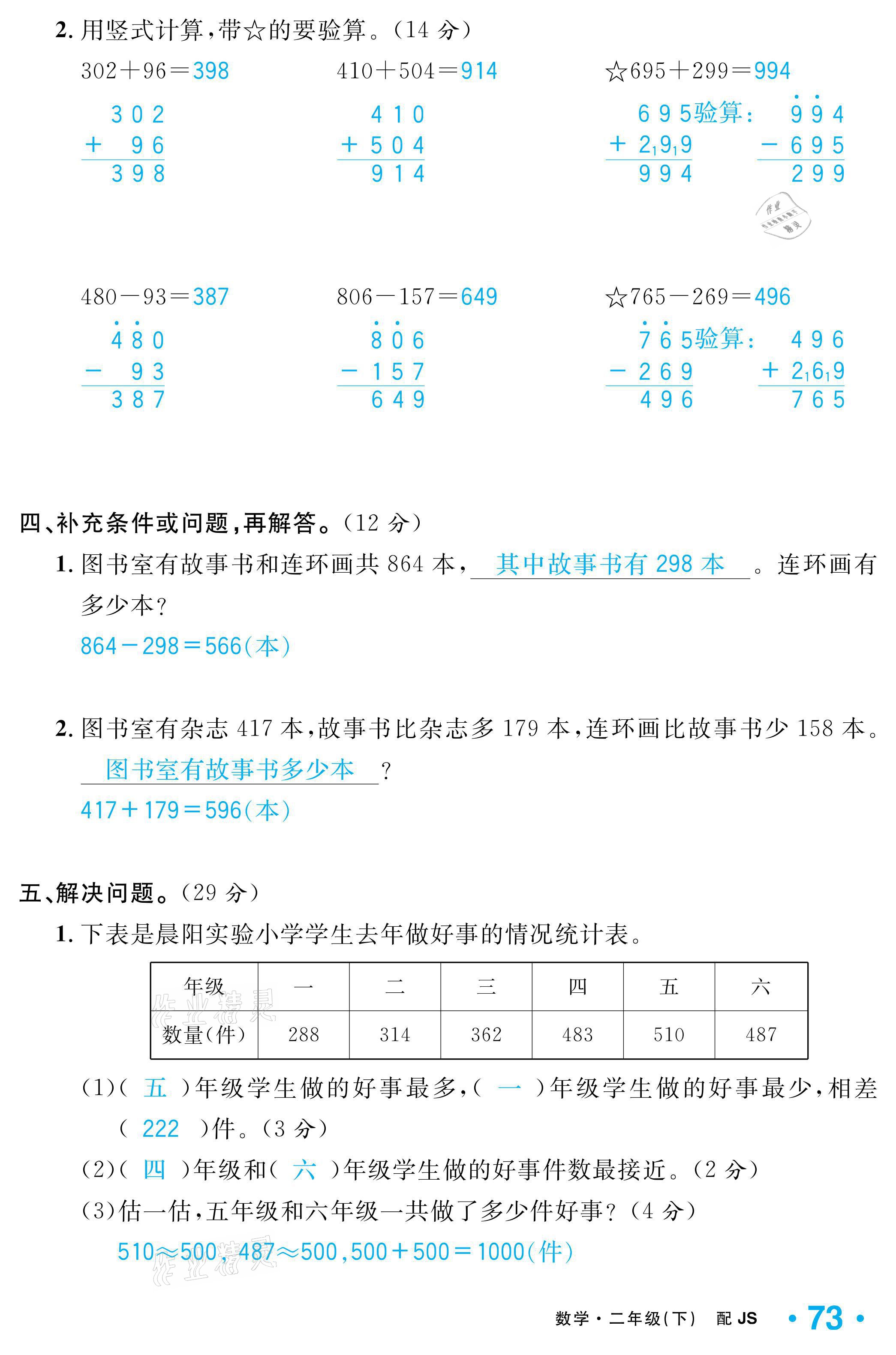 注:目前有些书本章节名称可能整理的还不是很完善,但都是按照顺序排列的,请同学们按照顺序仔细查找。练习册 2021年小学1课3练培优作业本二年级数学下册江苏版 答案主要是用来给同学们做完题方便对答案用的,请勿直接抄袭。