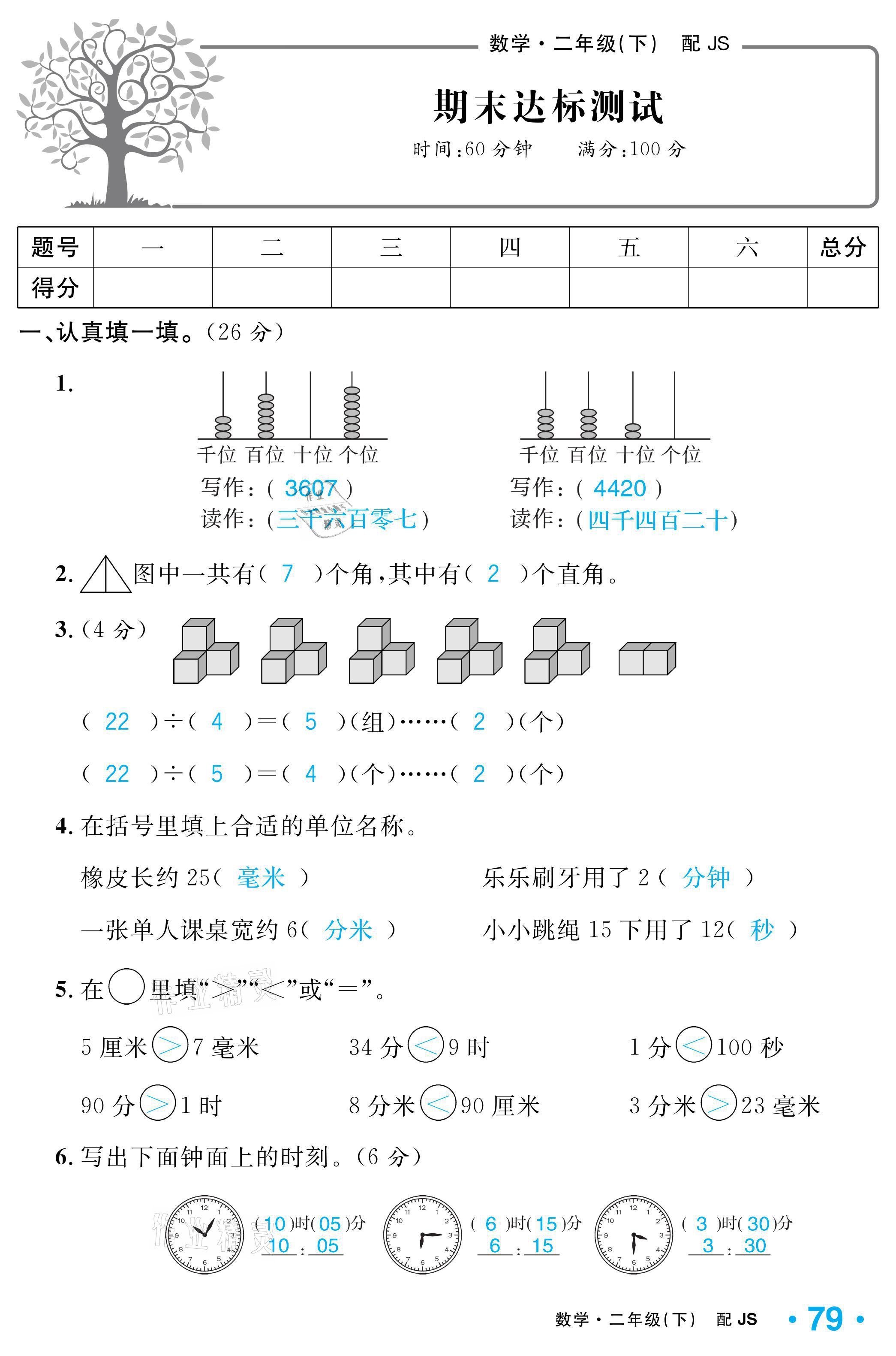 注:目前有些书本章节名称可能整理的还不是很完善,但都是按照顺序排列的,请同学们按照顺序仔细查找。练习册 2021年小学1课3练培优作业本二年级数学下册江苏版 答案主要是用来给同学们做完题方便对答案用的,请勿直接抄袭。
