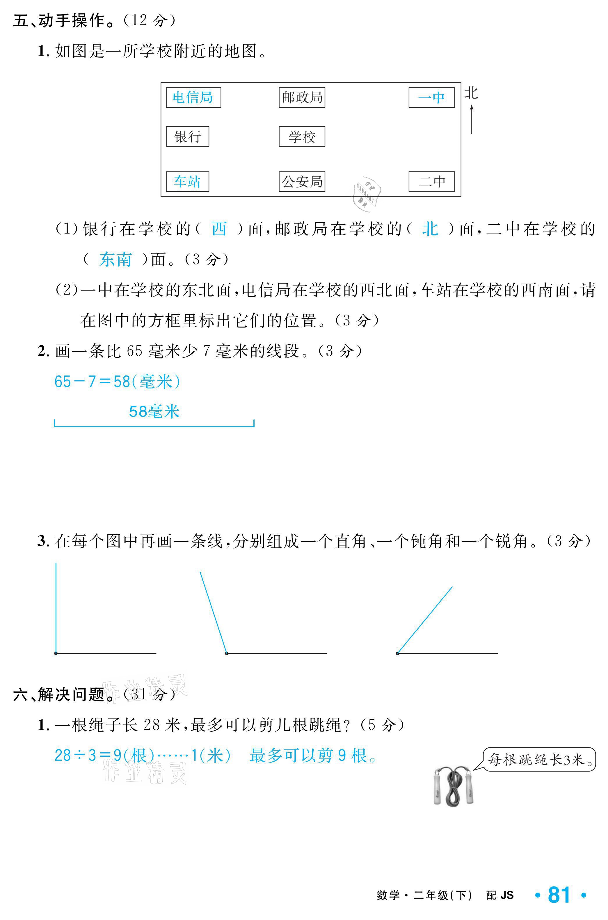 注:目前有些书本章节名称可能整理的还不是很完善,但都是按照顺序排列的,请同学们按照顺序仔细查找。练习册 2021年小学1课3练培优作业本二年级数学下册江苏版 答案主要是用来给同学们做完题方便对答案用的,请勿直接抄袭。