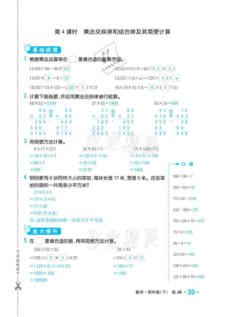 注:目前有些书本章节名称可能整理的还不是很完善,但都是按照顺序排列的,请同学们按照顺序仔细查找。练习册 2021年小学1课3练培优作业本四年级数学下册江苏版 答案主要是用来给同学们做完题方便对答案用的,请勿直接抄袭。