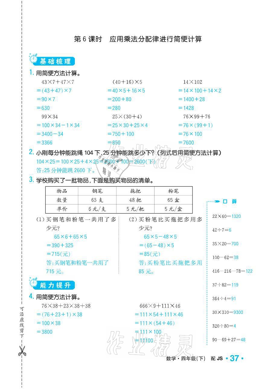 注:目前有些书本章节名称可能整理的还不是很完善,但都是按照顺序排列的,请同学们按照顺序仔细查找。练习册 2021年小学1课3练培优作业本四年级数学下册江苏版 答案主要是用来给同学们做完题方便对答案用的,请勿直接抄袭。