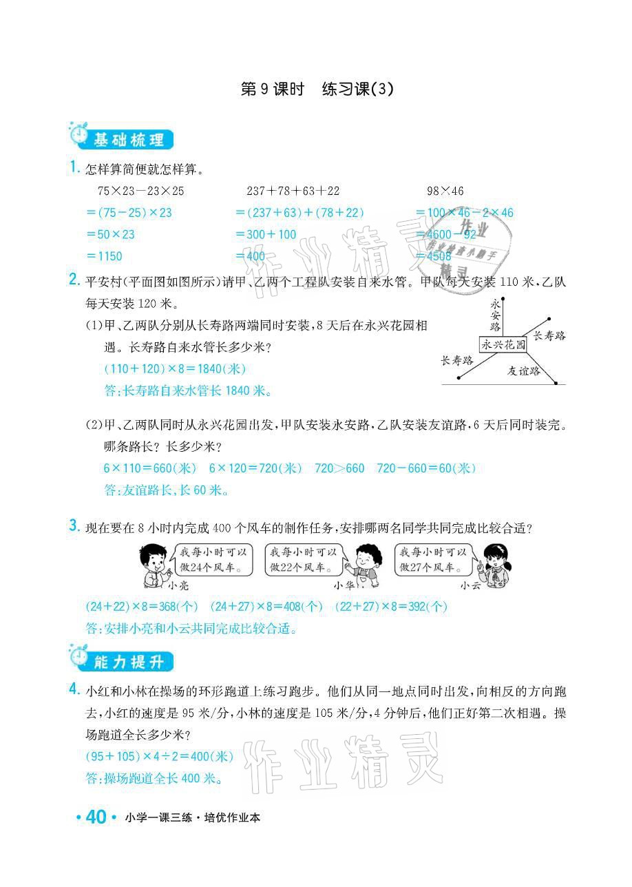 2021年小学1课3练培优作业本四年级数学下册江苏版