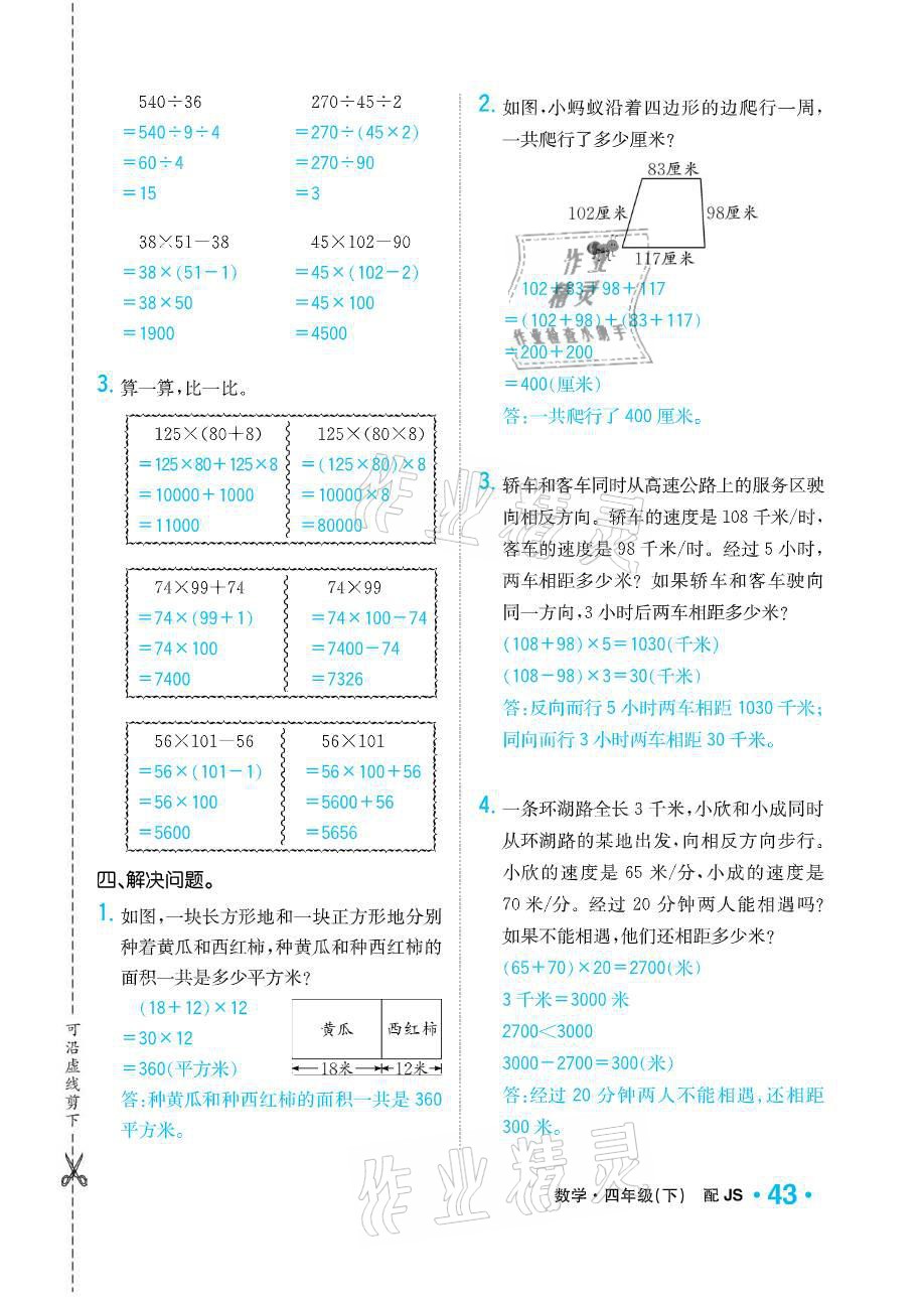 2021年小学1课3练培优作业本四年级数学下册江苏版