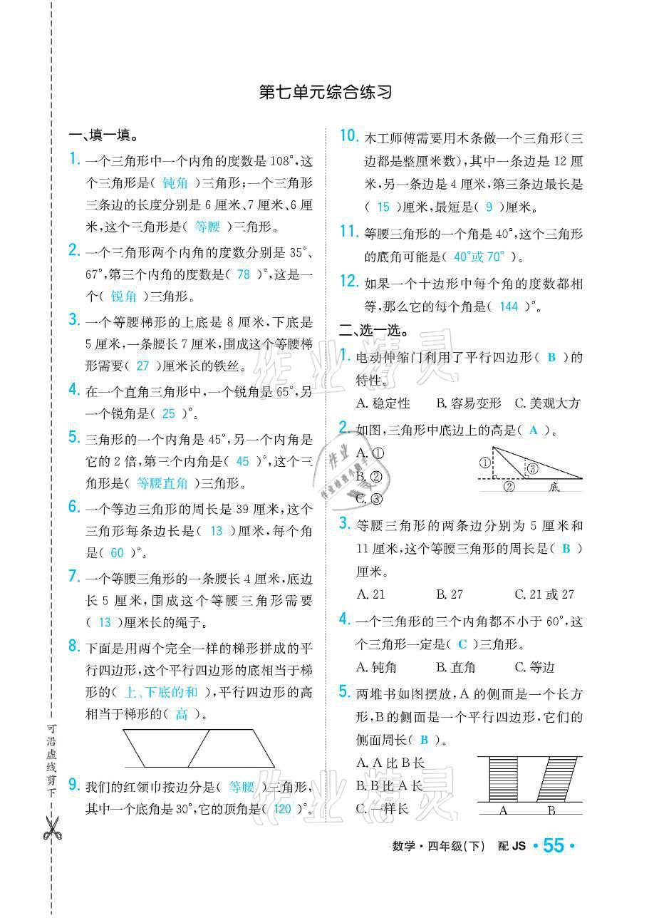 注:目前有些书本章节名称可能整理的还不是很完善,但都是按照顺序排列的,请同学们按照顺序仔细查找。练习册 2021年小学1课3练培优作业本四年级数学下册江苏版 答案主要是用来给同学们做完题方便对答案用的,请勿直接抄袭。