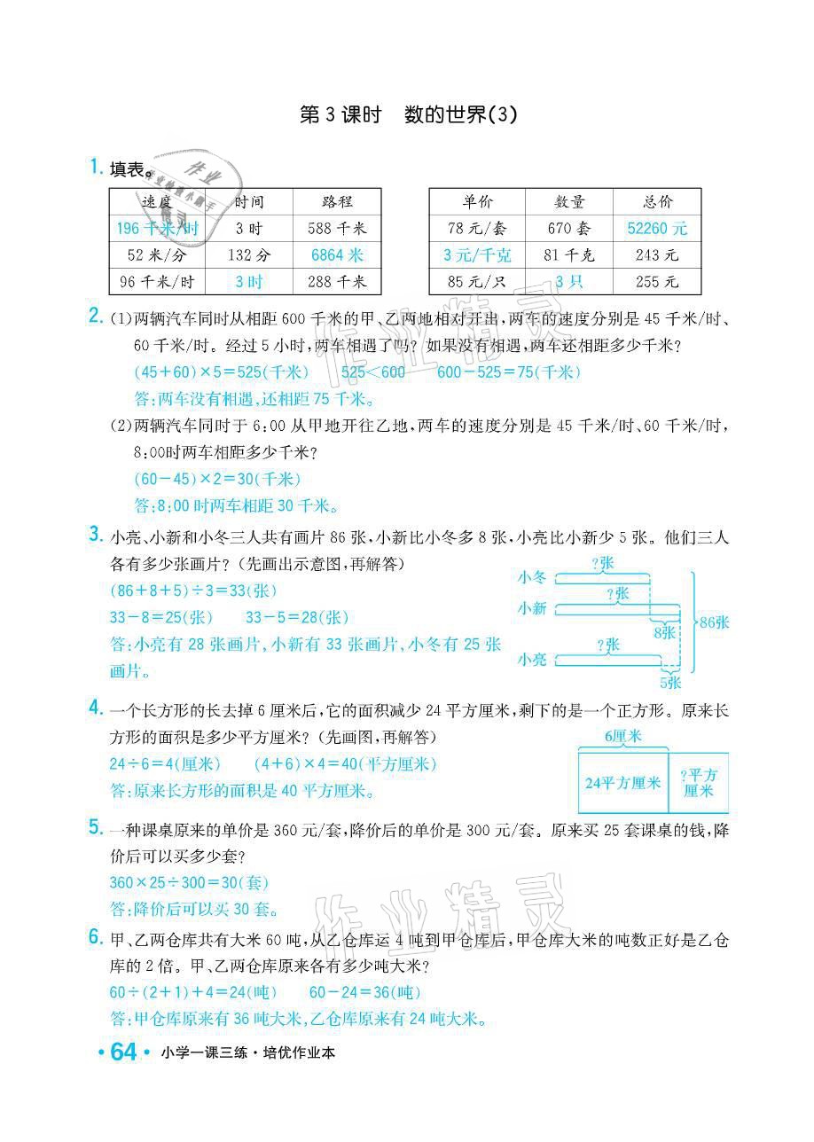 注:目前有些书本章节名称可能整理的还不是很完善,但都是按照顺序排列的,请同学们按照顺序仔细查找。练习册 2021年小学1课3练培优作业本四年级数学下册江苏版 答案主要是用来给同学们做完题方便对答案用的,请勿直接抄袭。