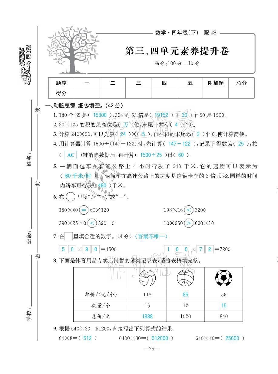注:目前有些书本章节名称可能整理的还不是很完善,但都是按照顺序排列的,请同学们按照顺序仔细查找。练习册 2021年小学1课3练培优作业本四年级数学下册江苏版 答案主要是用来给同学们做完题方便对答案用的,请勿直接抄袭。