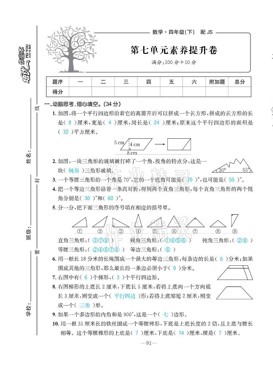 注:目前有些书本章节名称可能整理的还不是很完善,但都是按照顺序排列的,请同学们按照顺序仔细查找。练习册 2021年小学1课3练培优作业本四年级数学下册江苏版 答案主要是用来给同学们做完题方便对答案用的,请勿直接抄袭。