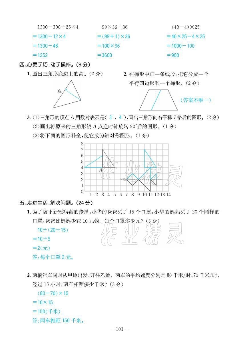 2021年小学1课3练培优作业本四年级数学下册江苏版
