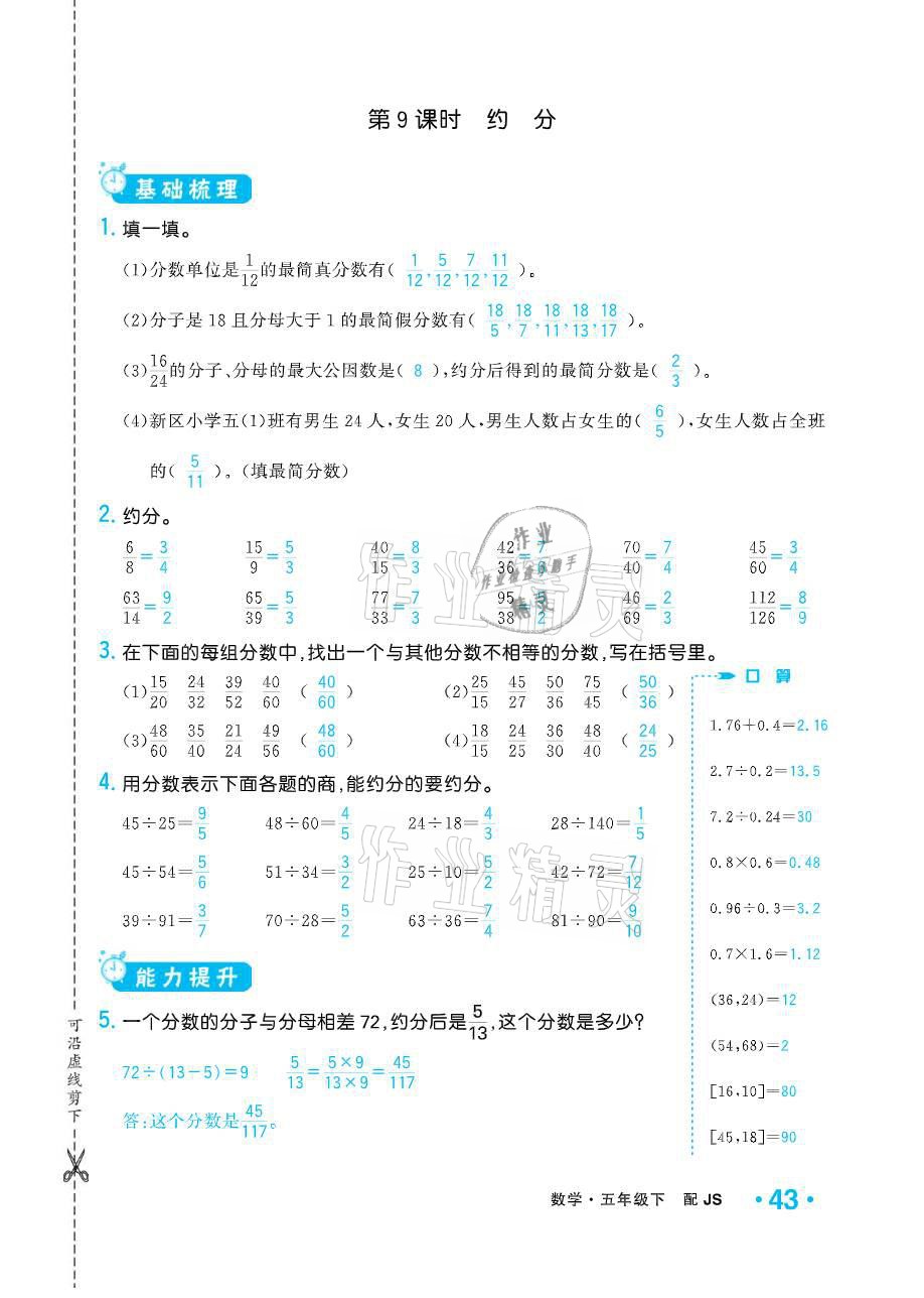 注:目前有些书本章节名称可能整理的还不是很完善,但都是按照顺序排列的,请同学们按照顺序仔细查找。练习册 2021年小学1课3练培优作业本五年级数学下册江苏版 答案主要是用来给同学们做完题方便对答案用的,请勿直接抄袭。