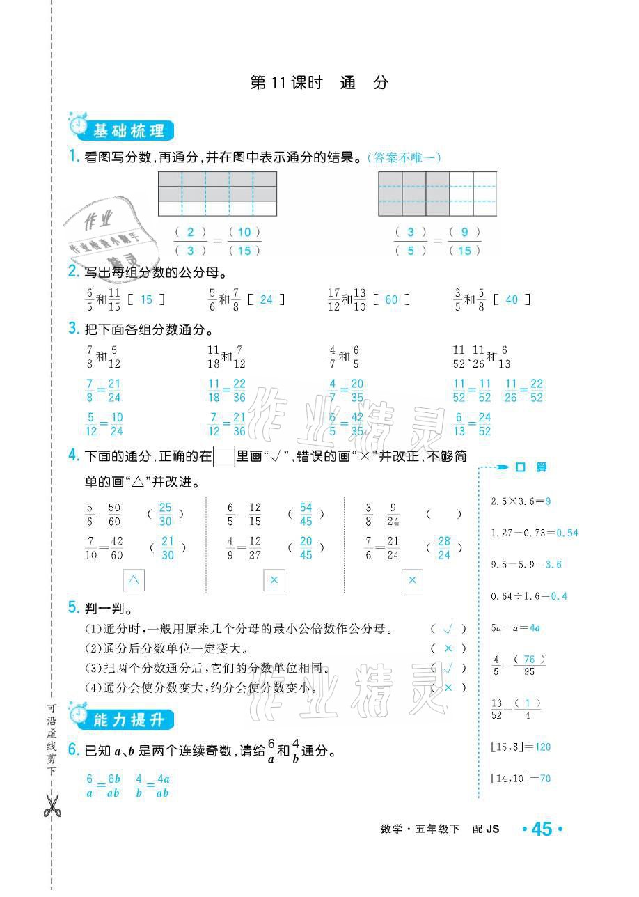 注:目前有些书本章节名称可能整理的还不是很完善,但都是按照顺序排列的,请同学们按照顺序仔细查找。练习册 2021年小学1课3练培优作业本五年级数学下册江苏版 答案主要是用来给同学们做完题方便对答案用的,请勿直接抄袭。