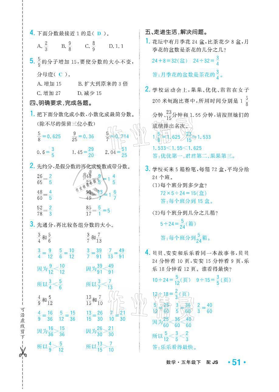 2021年小学1课3练培优作业本五年级数学下册江苏版