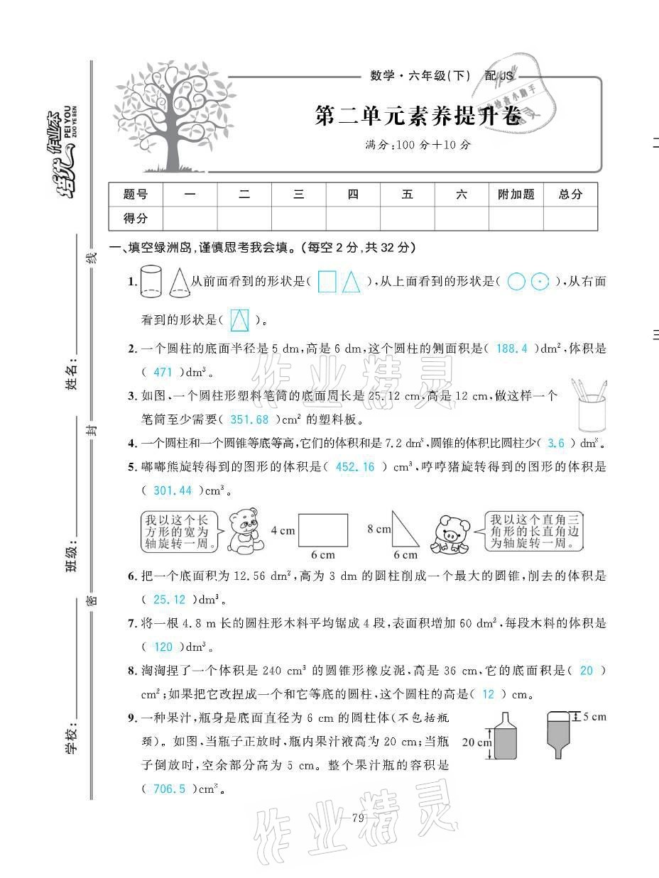 注:目前有些书本章节名称可能整理的还不是很完善,但都是按照顺序排列的,请同学们按照顺序仔细查找。练习册 2021年小学1课3练培优作业本六年级数学下册江苏版 答案主要是用来给同学们做完题方便对答案用的,请勿直接抄袭。