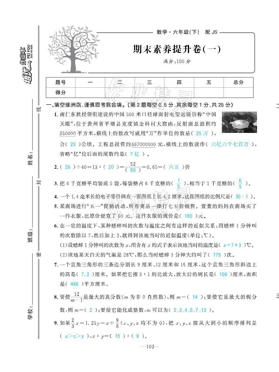 注:目前有些书本章节名称可能整理的还不是很完善,但都是按照顺序排列的,请同学们按照顺序仔细查找。练习册 2021年小学1课3练培优作业本六年级数学下册江苏版 答案主要是用来给同学们做完题方便对答案用的,请勿直接抄袭。