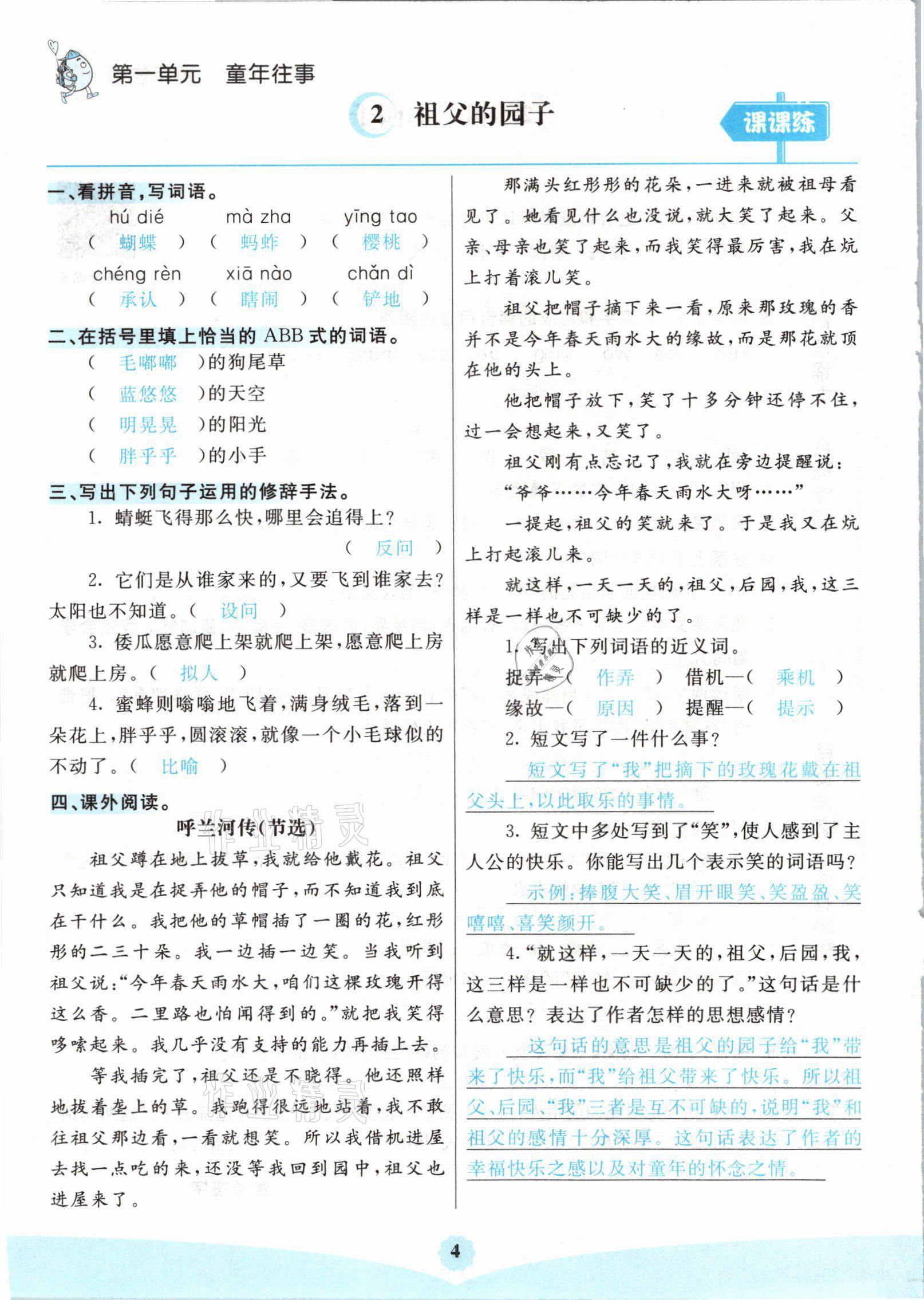 注:目前有些书本章节名称可能整理的还不是很完善,但都是按照顺序排列的,请同学们按照顺序仔细查找。练习册 2021年七彩课堂五年级语文下册人教版山西专版 答案主要是用来给同学们做完题方便对答案用的,请勿直接抄袭。