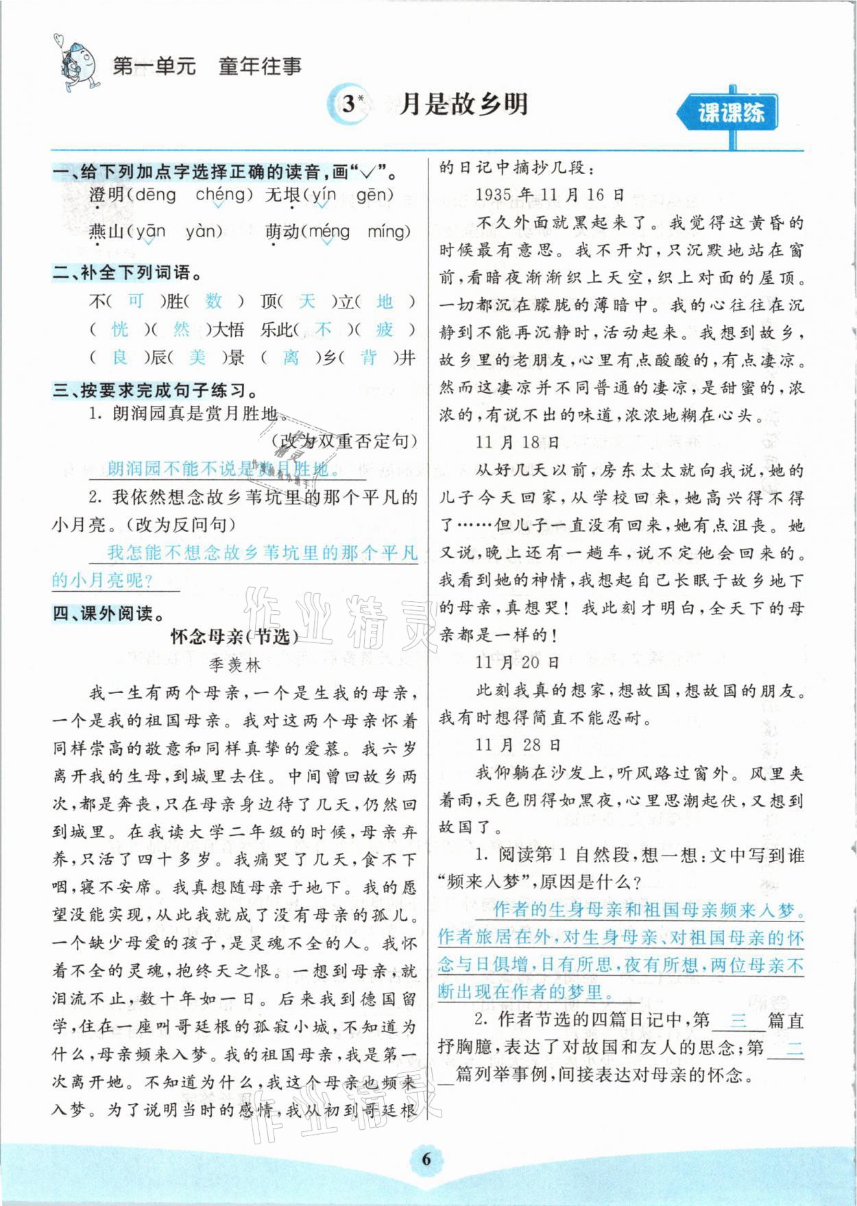 注:目前有些书本章节名称可能整理的还不是很完善,但都是按照顺序排列的,请同学们按照顺序仔细查找。练习册 2021年七彩课堂五年级语文下册人教版山西专版 答案主要是用来给同学们做完题方便对答案用的,请勿直接抄袭。