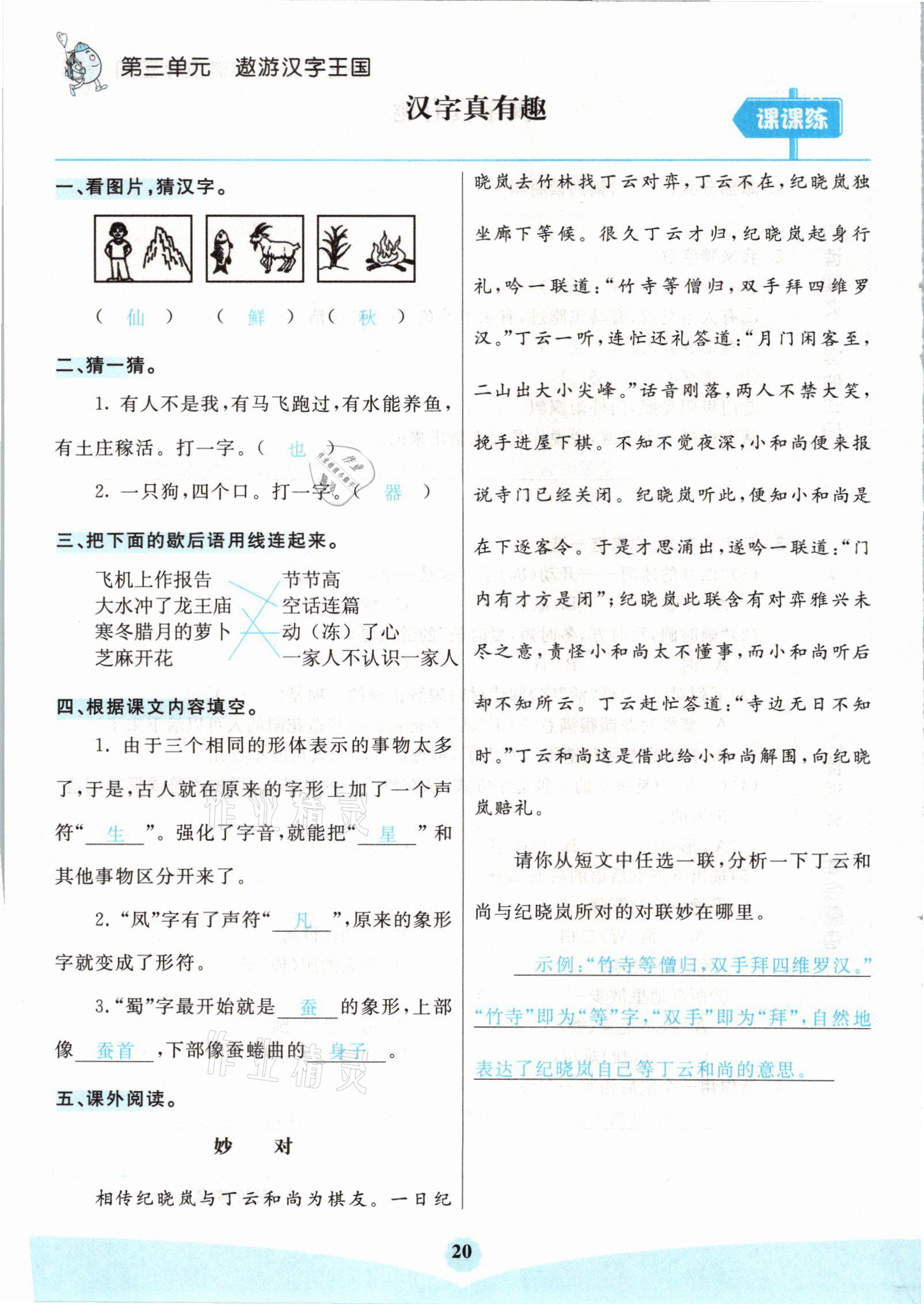 注:目前有些书本章节名称可能整理的还不是很完善,但都是按照顺序排列的,请同学们按照顺序仔细查找。练习册 2021年七彩课堂五年级语文下册人教版山西专版 答案主要是用来给同学们做完题方便对答案用的,请勿直接抄袭。