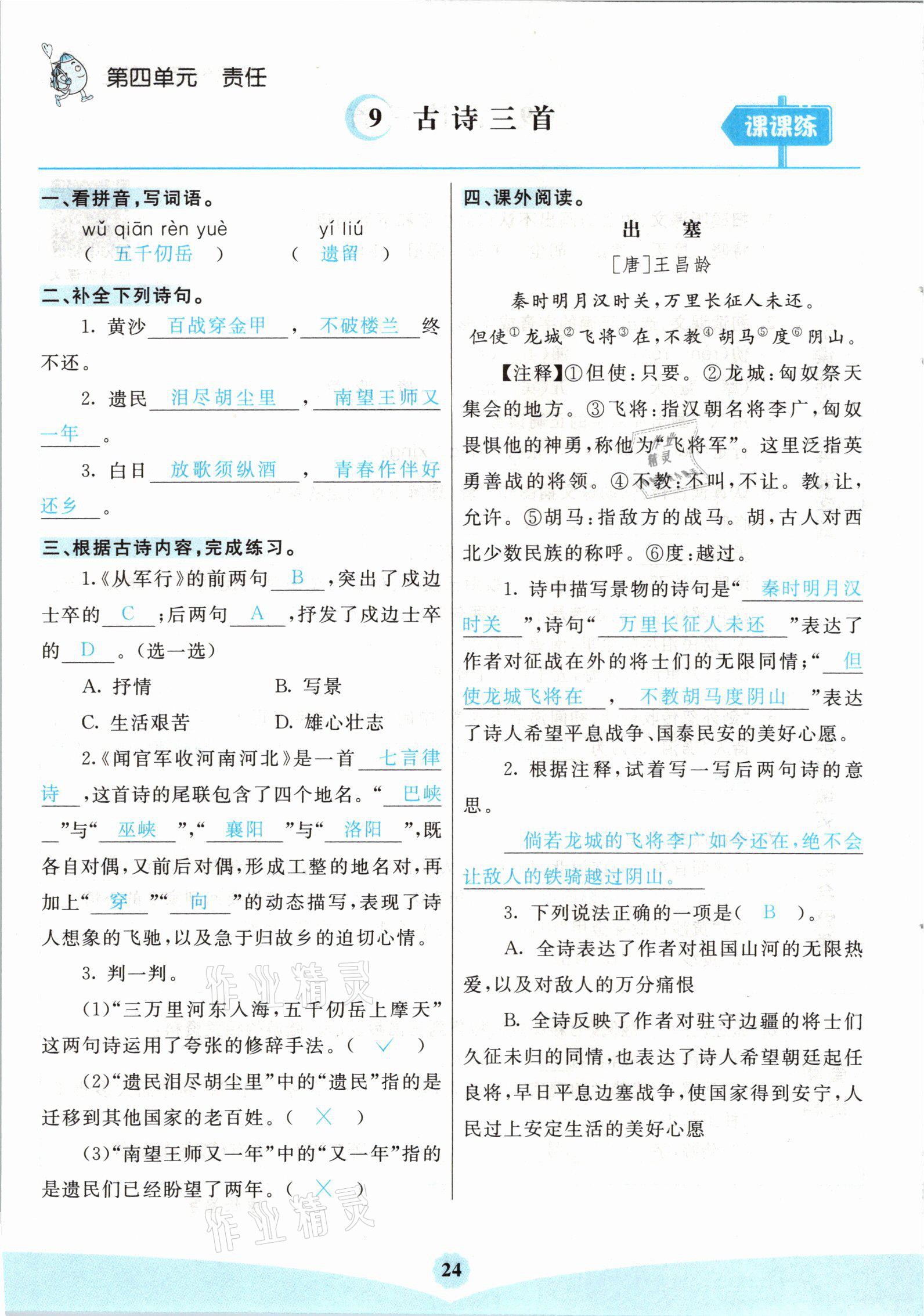 注:目前有些书本章节名称可能整理的还不是很完善,但都是按照顺序排列的,请同学们按照顺序仔细查找。练习册 2021年七彩课堂五年级语文下册人教版山西专版 答案主要是用来给同学们做完题方便对答案用的,请勿直接抄袭。