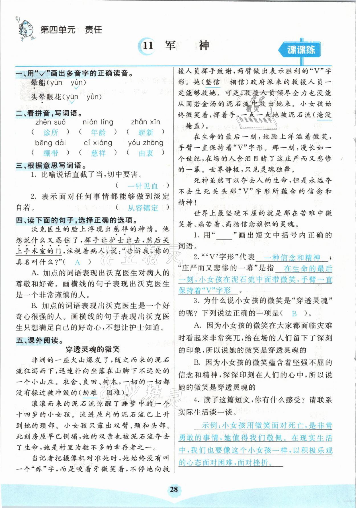 注:目前有些书本章节名称可能整理的还不是很完善,但都是按照顺序排列的,请同学们按照顺序仔细查找。练习册 2021年七彩课堂五年级语文下册人教版山西专版 答案主要是用来给同学们做完题方便对答案用的,请勿直接抄袭。