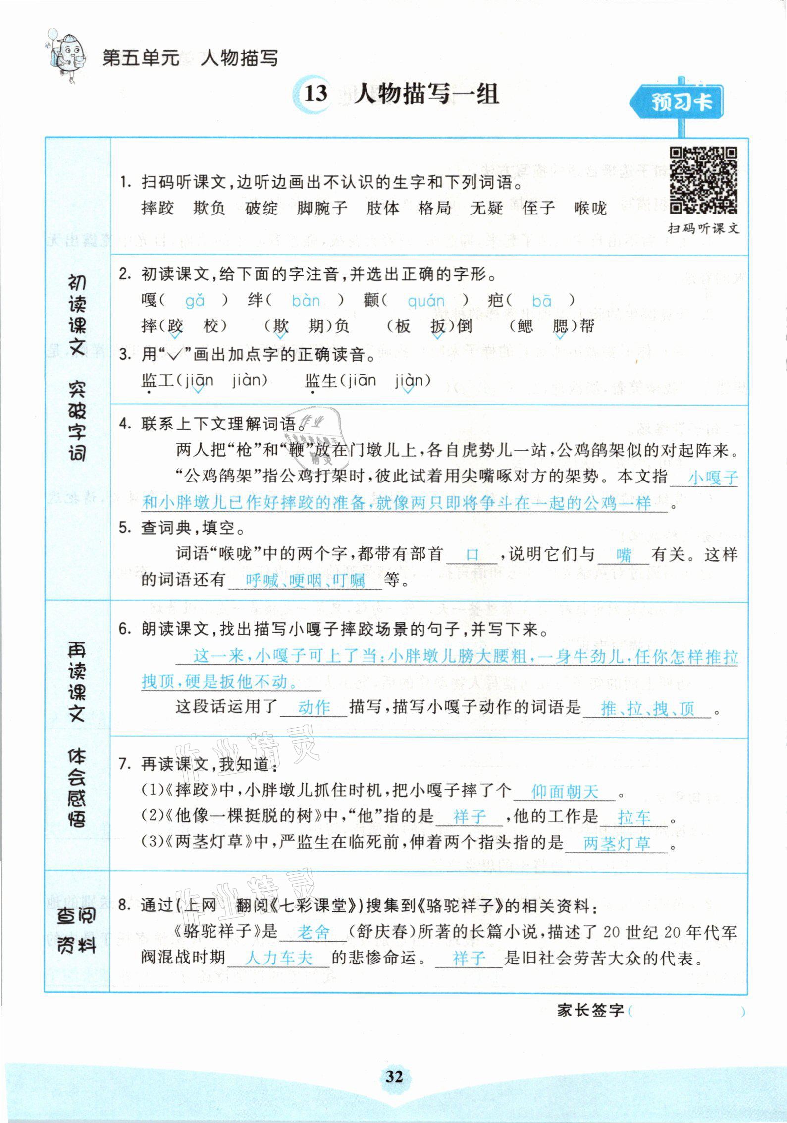 注:目前有些书本章节名称可能整理的还不是很完善,但都是按照顺序排列的,请同学们按照顺序仔细查找。练习册 2021年七彩课堂五年级语文下册人教版山西专版 答案主要是用来给同学们做完题方便对答案用的,请勿直接抄袭。