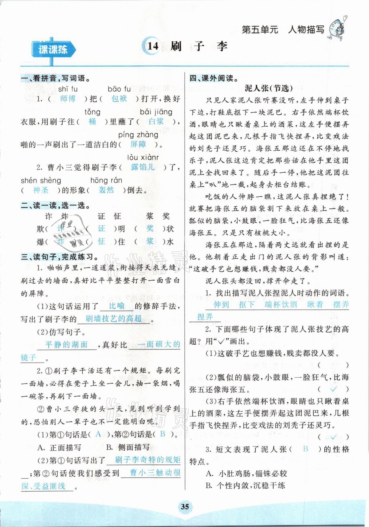 注:目前有些书本章节名称可能整理的还不是很完善,但都是按照顺序排列的,请同学们按照顺序仔细查找。练习册 2021年七彩课堂五年级语文下册人教版山西专版 答案主要是用来给同学们做完题方便对答案用的,请勿直接抄袭。