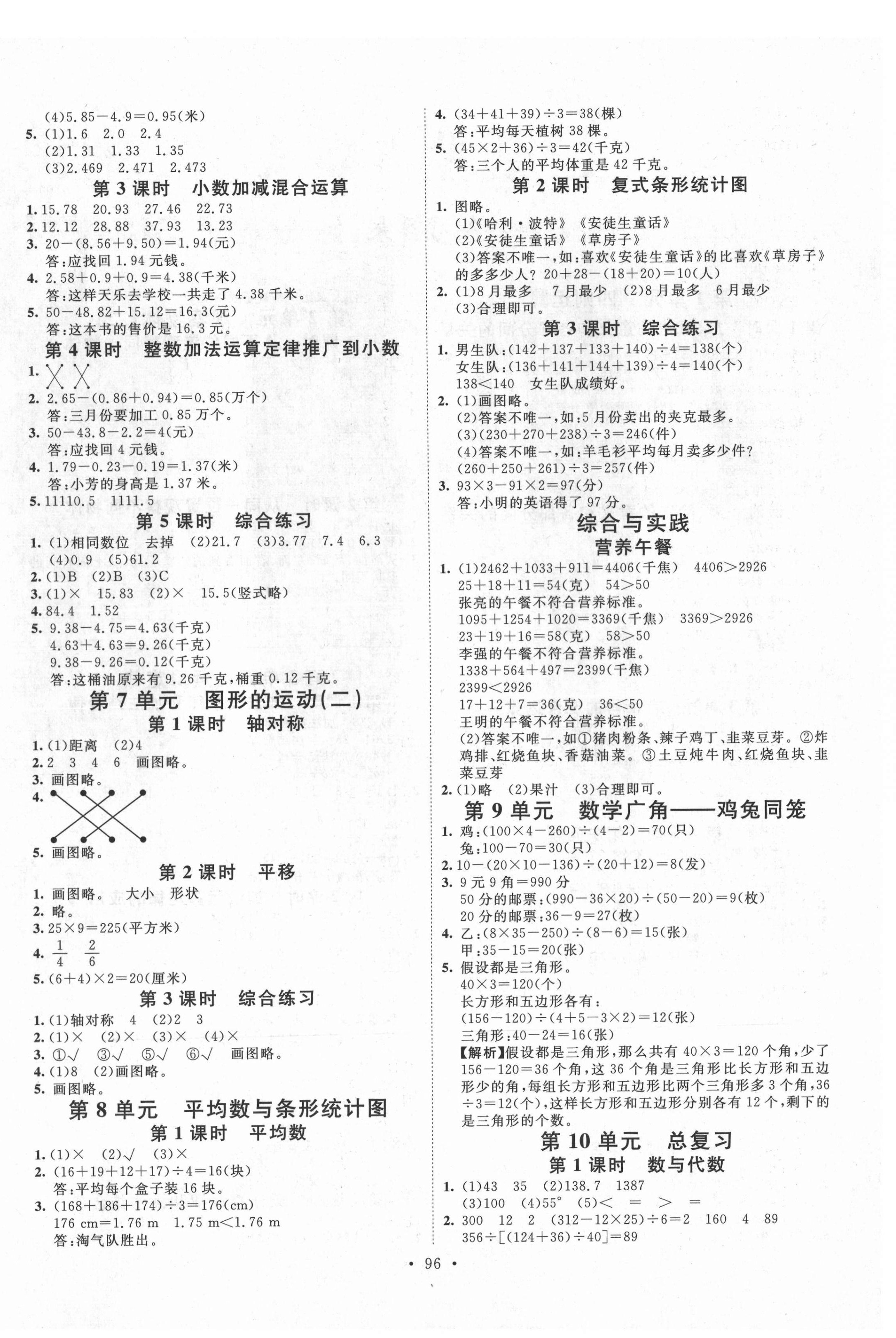 《2021年每时每刻快乐优加作业本四年级数学下册人教版P版》