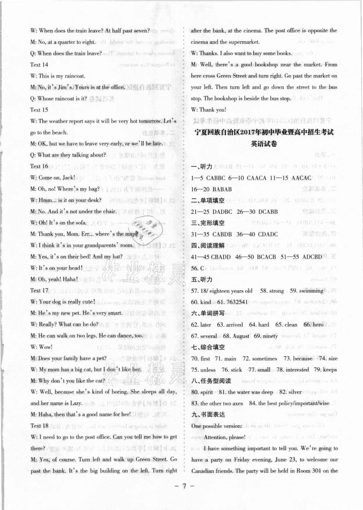 注:目前有些书本章节名称可能整理的还不是很完善,但都是按照顺序排列的,请同学们按照顺序仔细查找。练习册 2021年宁夏中考试题精选英语 答案主要是用来给同学们做完题方便对答案用的,请勿直接抄袭。