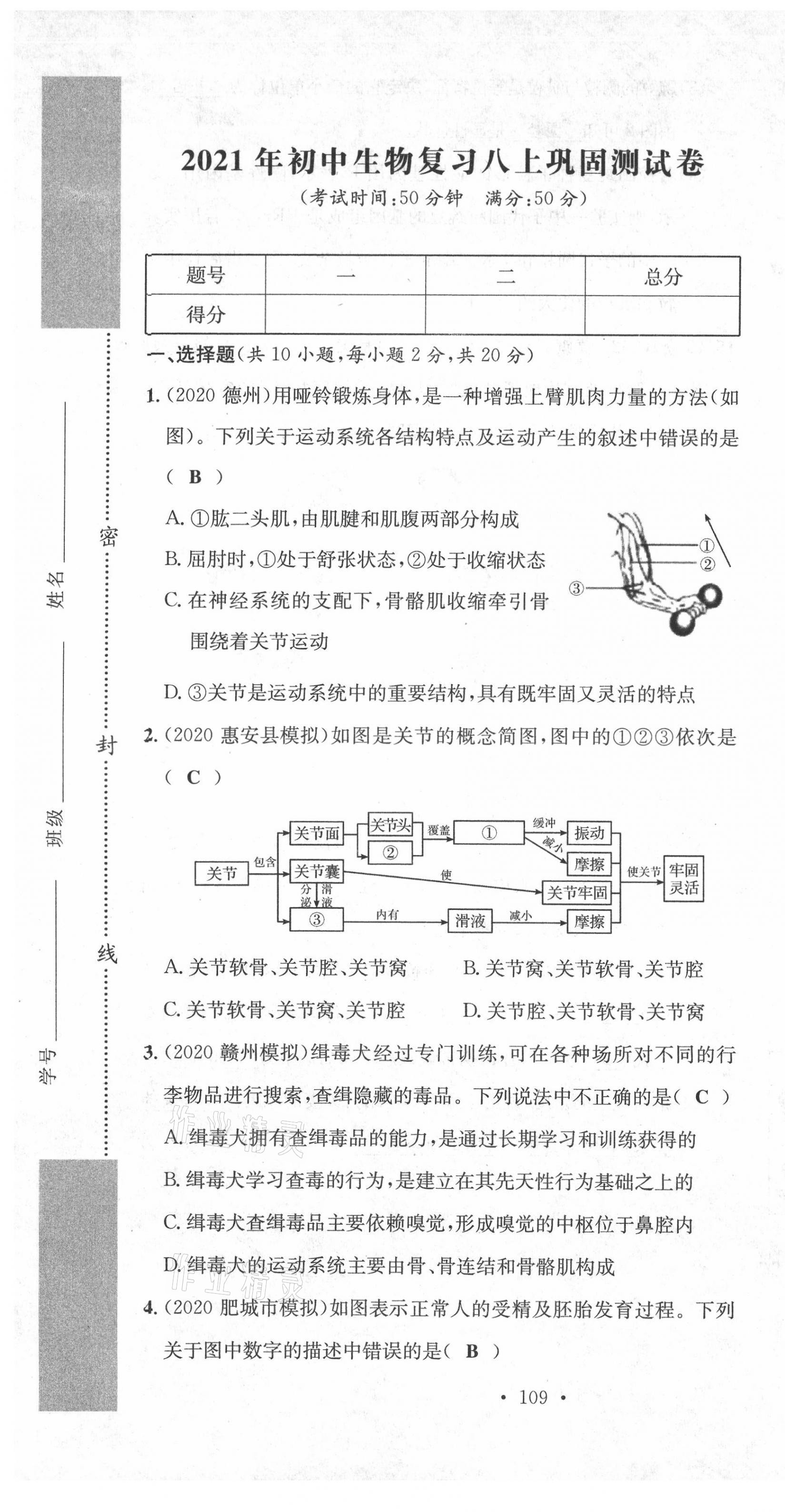 注:目前有些书本章节名称可能整理的还不是很完善,但都是按照顺序排列的,请同学们按照顺序仔细查找。练习册 2021年中考总复习生物长江出版社 答案主要是用来给同学们做完题方便对答案用的,请勿直接抄袭。