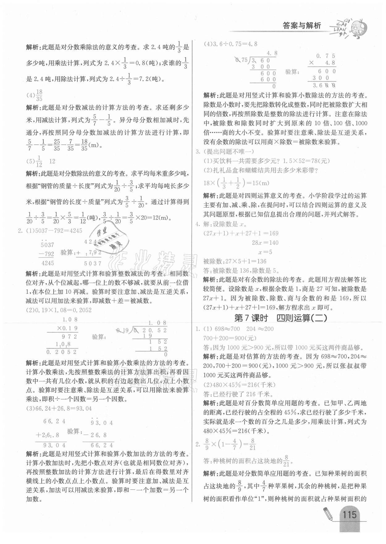 注:目前有些书本章节名称可能整理的还不是很完善,但都是按照顺序排列的,请同学们按照顺序仔细查找。练习册 2021年七彩练霸六年级数学下册苏教版 答案主要是用来给同学们做完题方便对答案用的,请勿直接抄袭。
