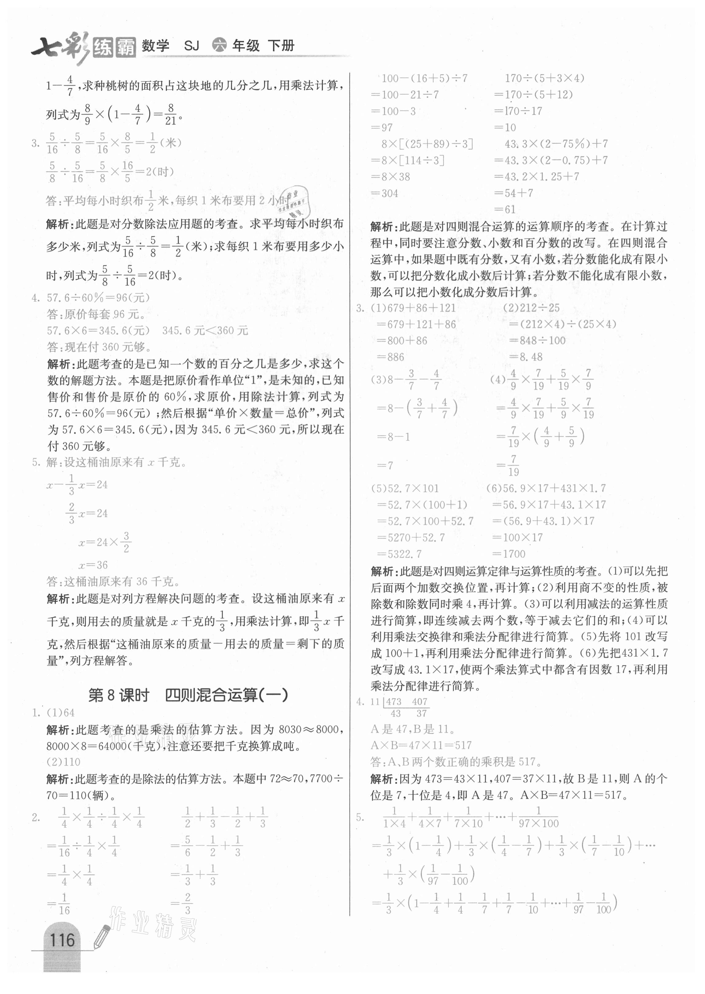 注:目前有些书本章节名称可能整理的还不是很完善,但都是按照顺序排列的,请同学们按照顺序仔细查找。练习册 2021年七彩练霸六年级数学下册苏教版 答案主要是用来给同学们做完题方便对答案用的,请勿直接抄袭。