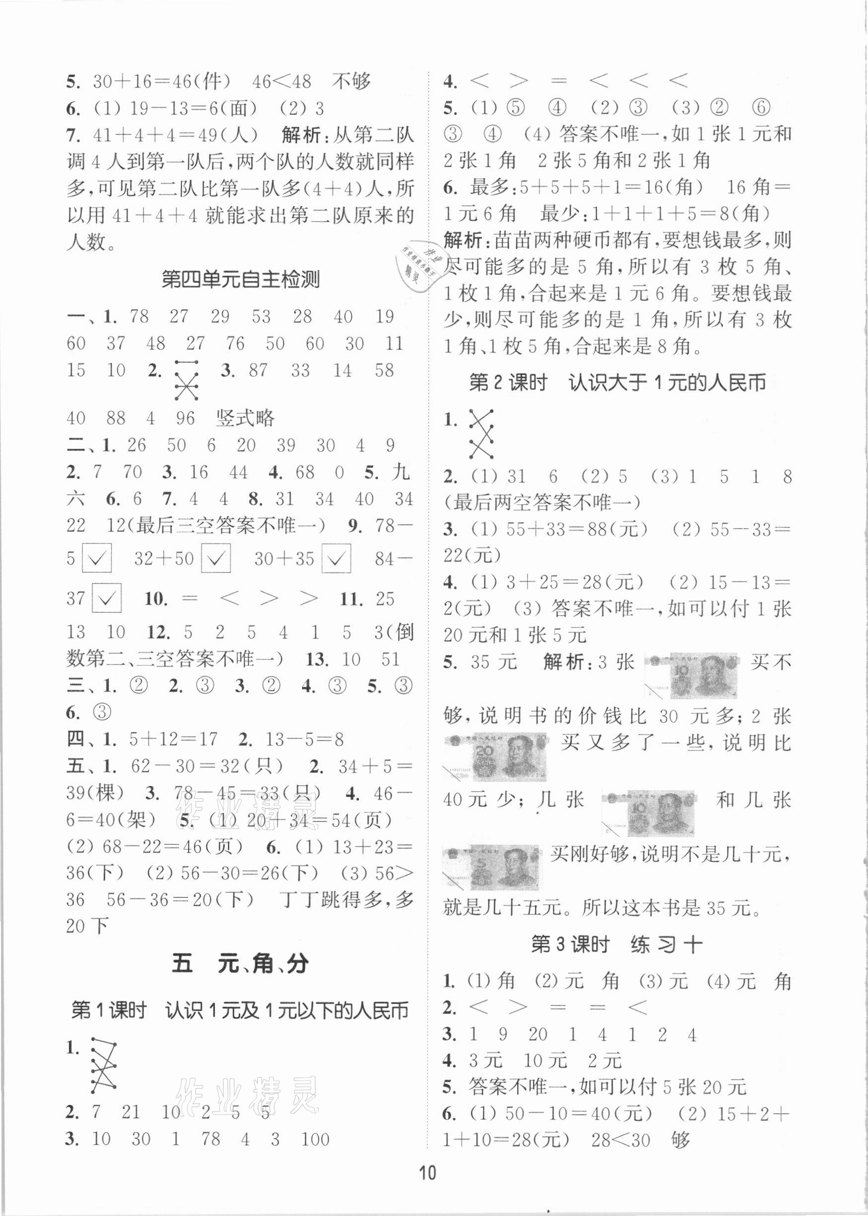 注:目前有些书本章节名称可能整理的还不是很完善,但都是按照顺序排列的,请同学们按照顺序仔细查找。练习册 2021年通城学典课时作业本一年级数学下册苏教版江苏专用 答案主要是用来给同学们做完题方便对答案用的,请勿直接抄袭。