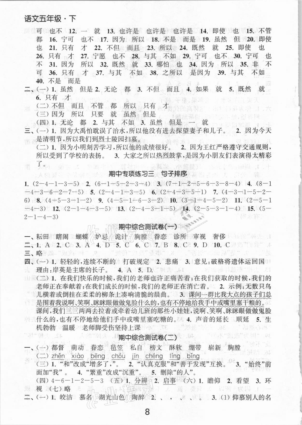 注:目前有些书本章节名称可能整理的还不是很完善,但都是按照顺序排列的,请同学们按照顺序仔细查找。练习册 2021年高效精练提优作业本五年级语文下册人教版 答案主要是用来给同学们做完题方便对答案用的,请勿直接抄袭。