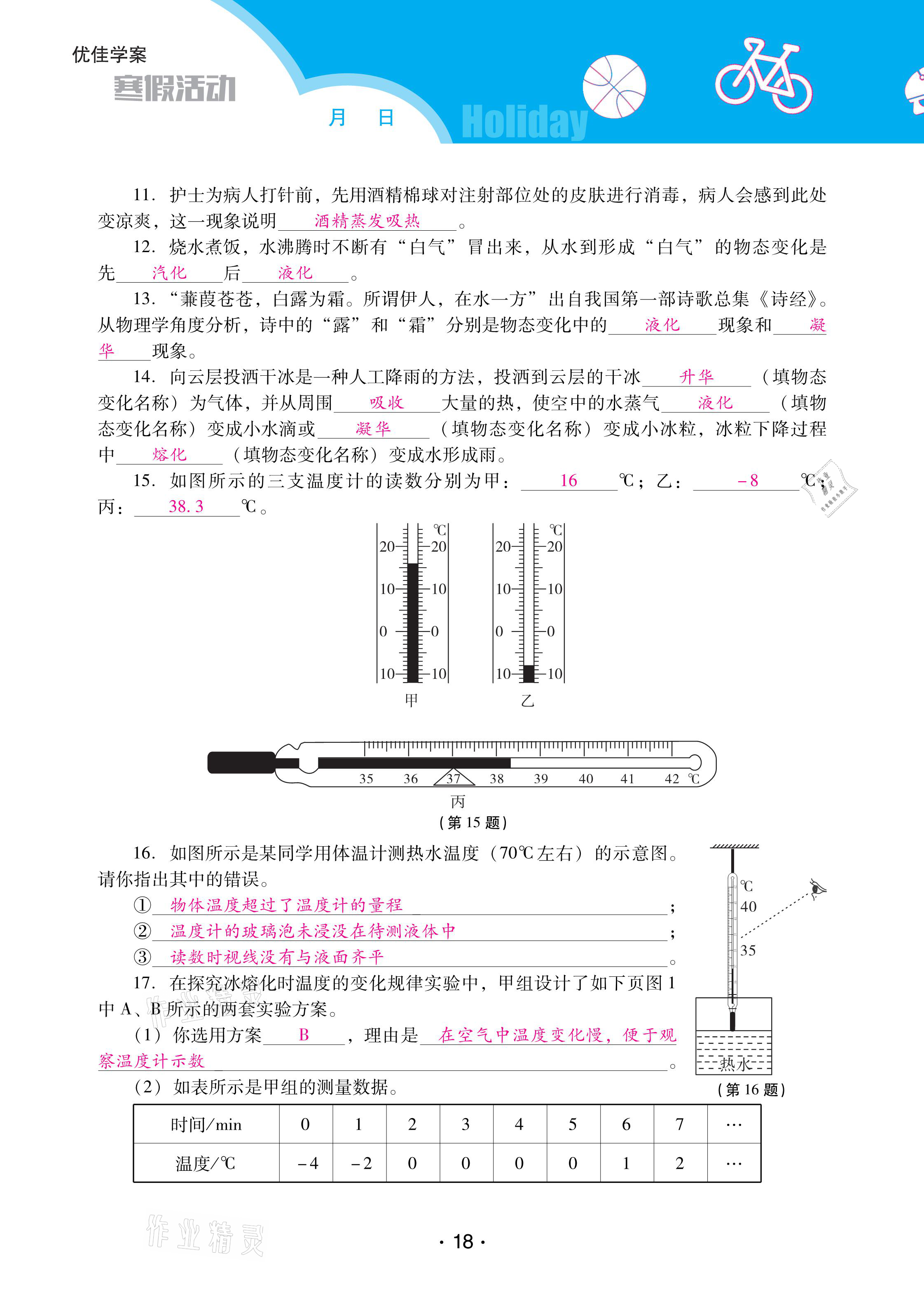 注:目前有些书本章节名称可能整理的还不是很完善,但都是按照顺序排列的,请同学们按照顺序仔细查找。练习册 2021年优佳学案寒假活动八年级物理人教版 答案主要是用来给同学们做完题方便对答案用的,请勿直接抄袭。