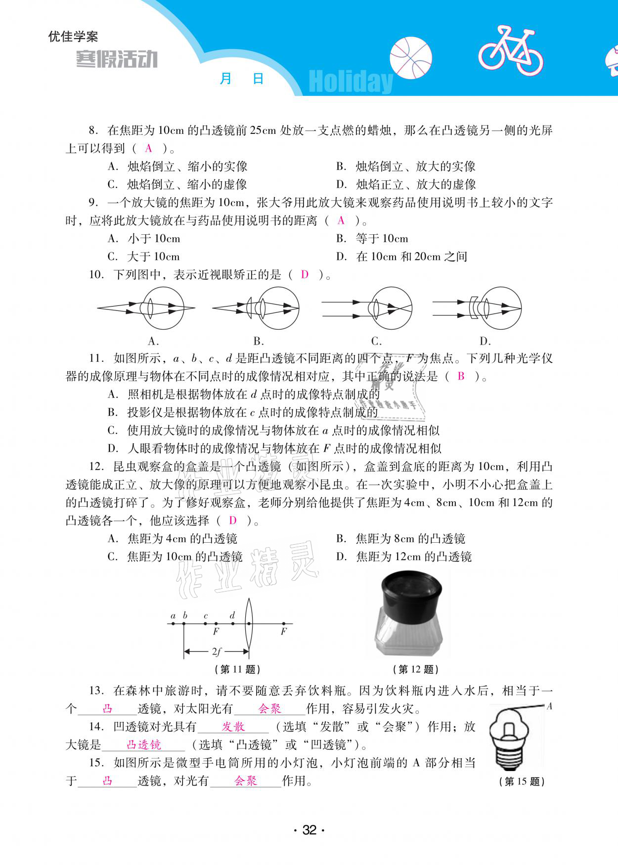 注:目前有些书本章节名称可能整理的还不是很完善,但都是按照顺序排列的,请同学们按照顺序仔细查找。练习册 2021年优佳学案寒假活动八年级物理人教版 答案主要是用来给同学们做完题方便对答案用的,请勿直接抄袭。