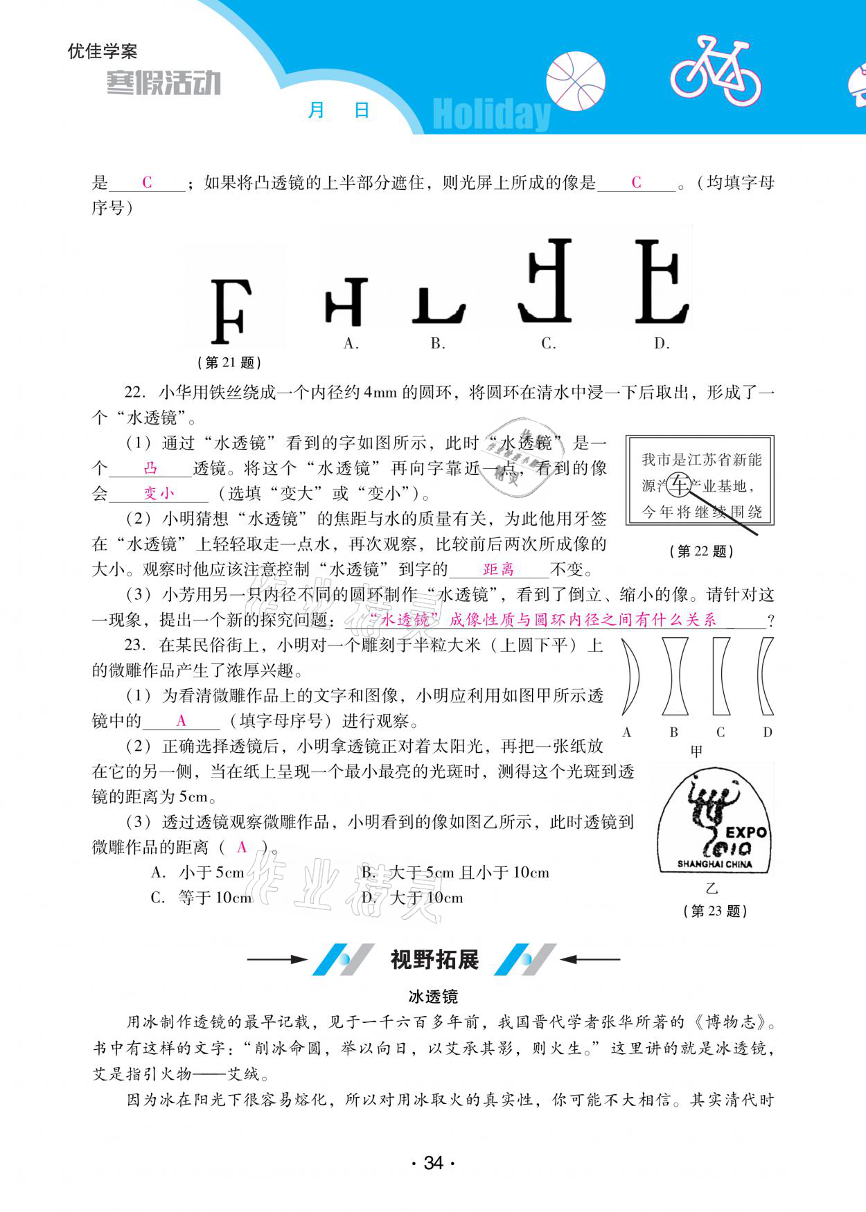2021年优佳学案寒假活动八年级物理人教版