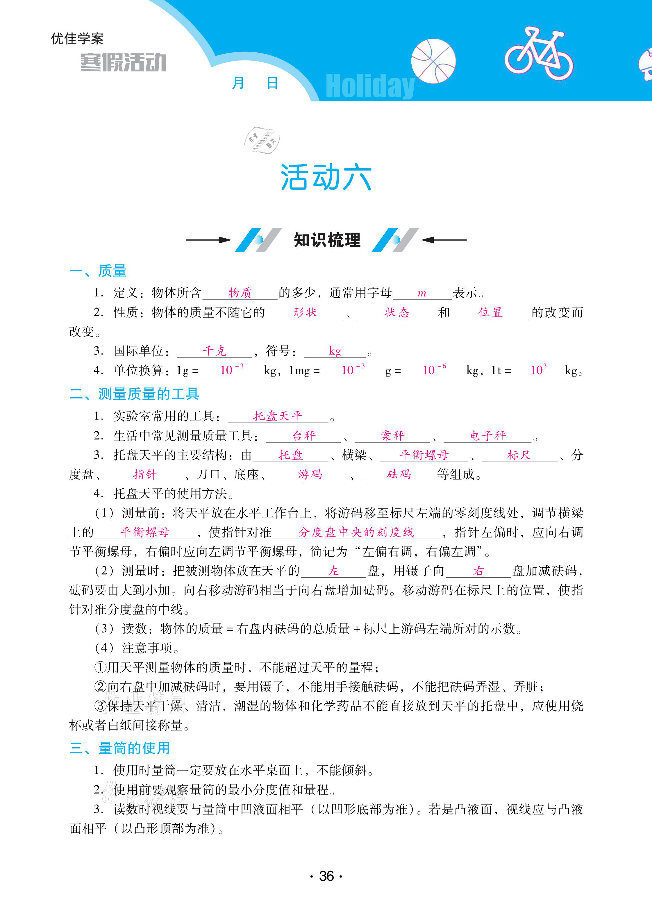 注:目前有些书本章节名称可能整理的还不是很完善,但都是按照顺序排列的,请同学们按照顺序仔细查找。练习册 2021年优佳学案寒假活动八年级物理人教版 答案主要是用来给同学们做完题方便对答案用的,请勿直接抄袭。