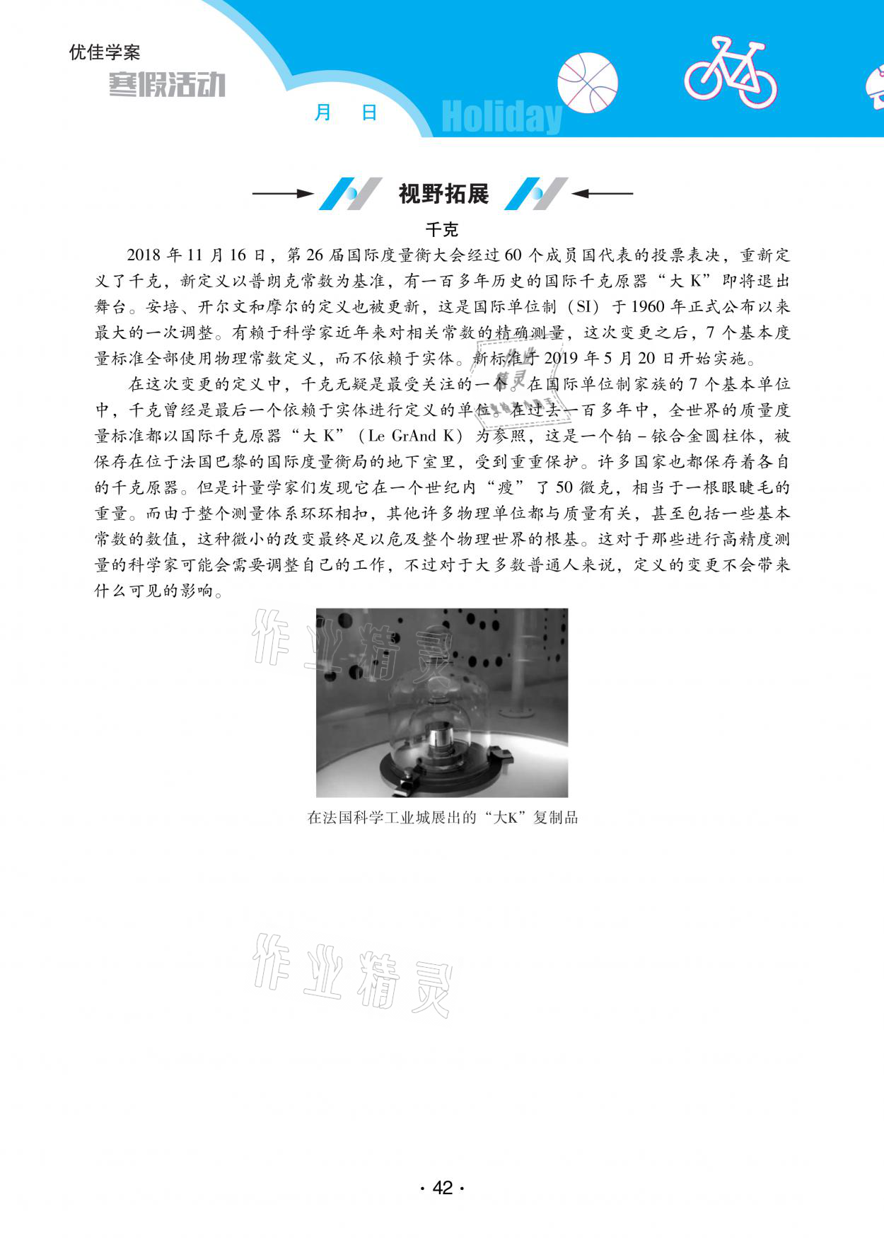 注:目前有些书本章节名称可能整理的还不是很完善,但都是按照顺序排列的,请同学们按照顺序仔细查找。练习册 2021年优佳学案寒假活动八年级物理人教版 答案主要是用来给同学们做完题方便对答案用的,请勿直接抄袭。