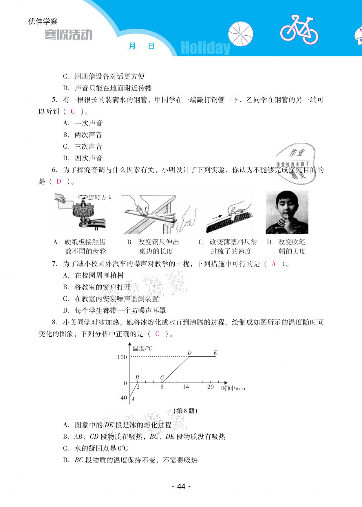 2021年优佳学案寒假活动八年级物理人教版