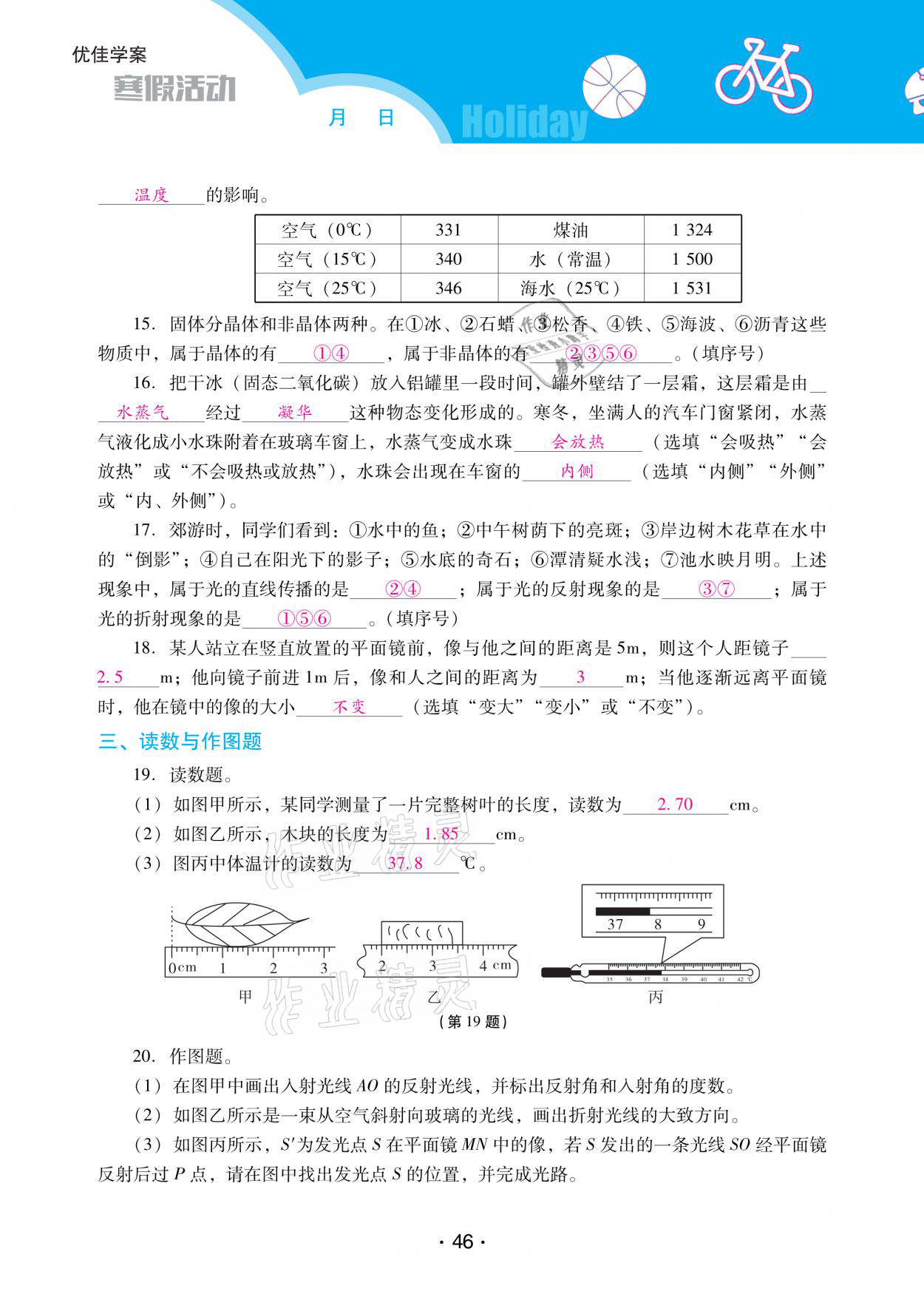 注:目前有些书本章节名称可能整理的还不是很完善,但都是按照顺序排列的,请同学们按照顺序仔细查找。练习册 2021年优佳学案寒假活动八年级物理人教版 答案主要是用来给同学们做完题方便对答案用的,请勿直接抄袭。