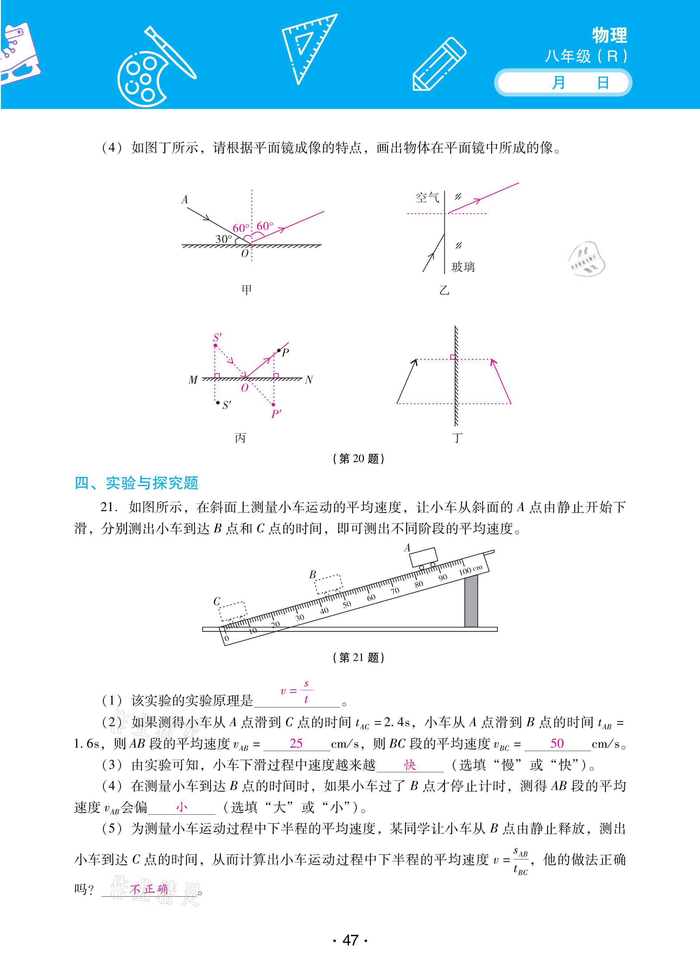 注:目前有些书本章节名称可能整理的还不是很完善,但都是按照顺序排列的,请同学们按照顺序仔细查找。练习册 2021年优佳学案寒假活动八年级物理人教版 答案主要是用来给同学们做完题方便对答案用的,请勿直接抄袭。