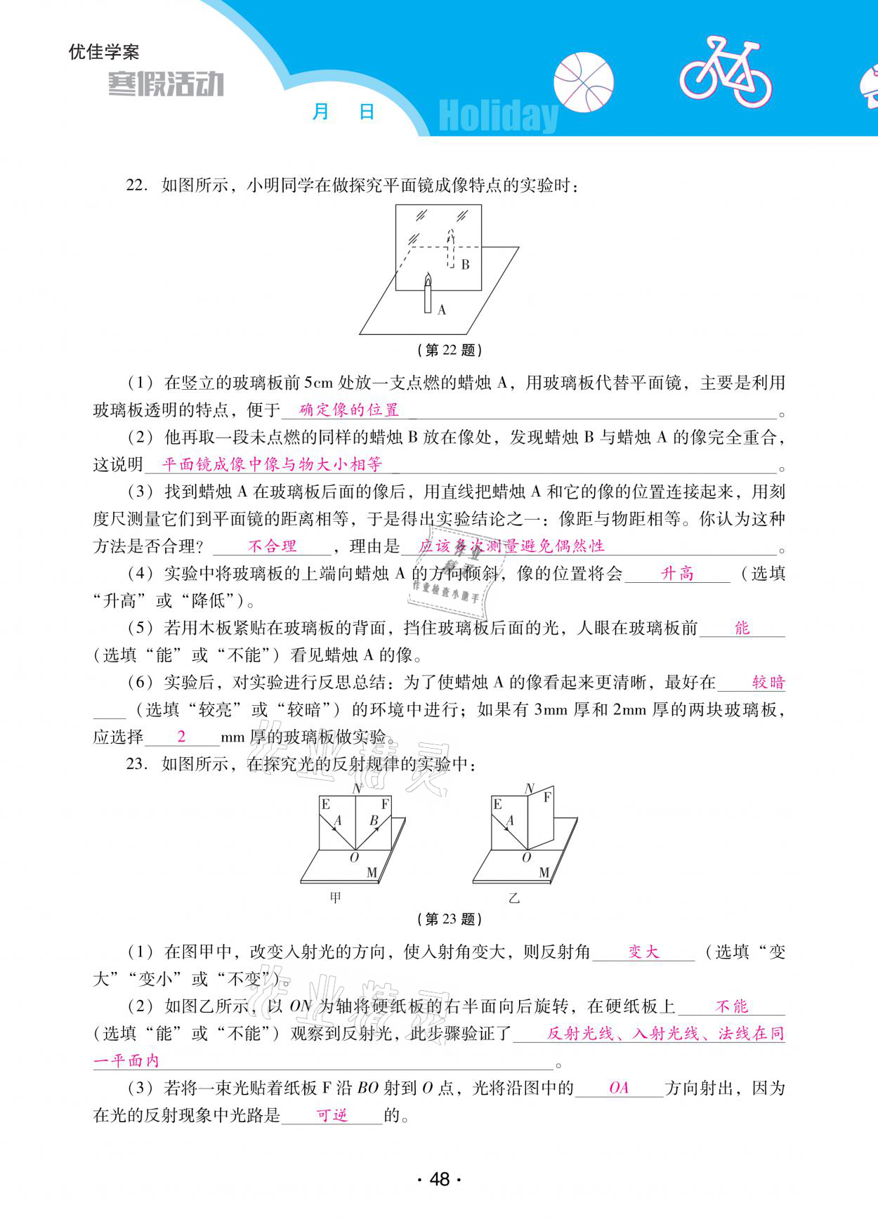 2021年优佳学案寒假活动八年级物理人教版