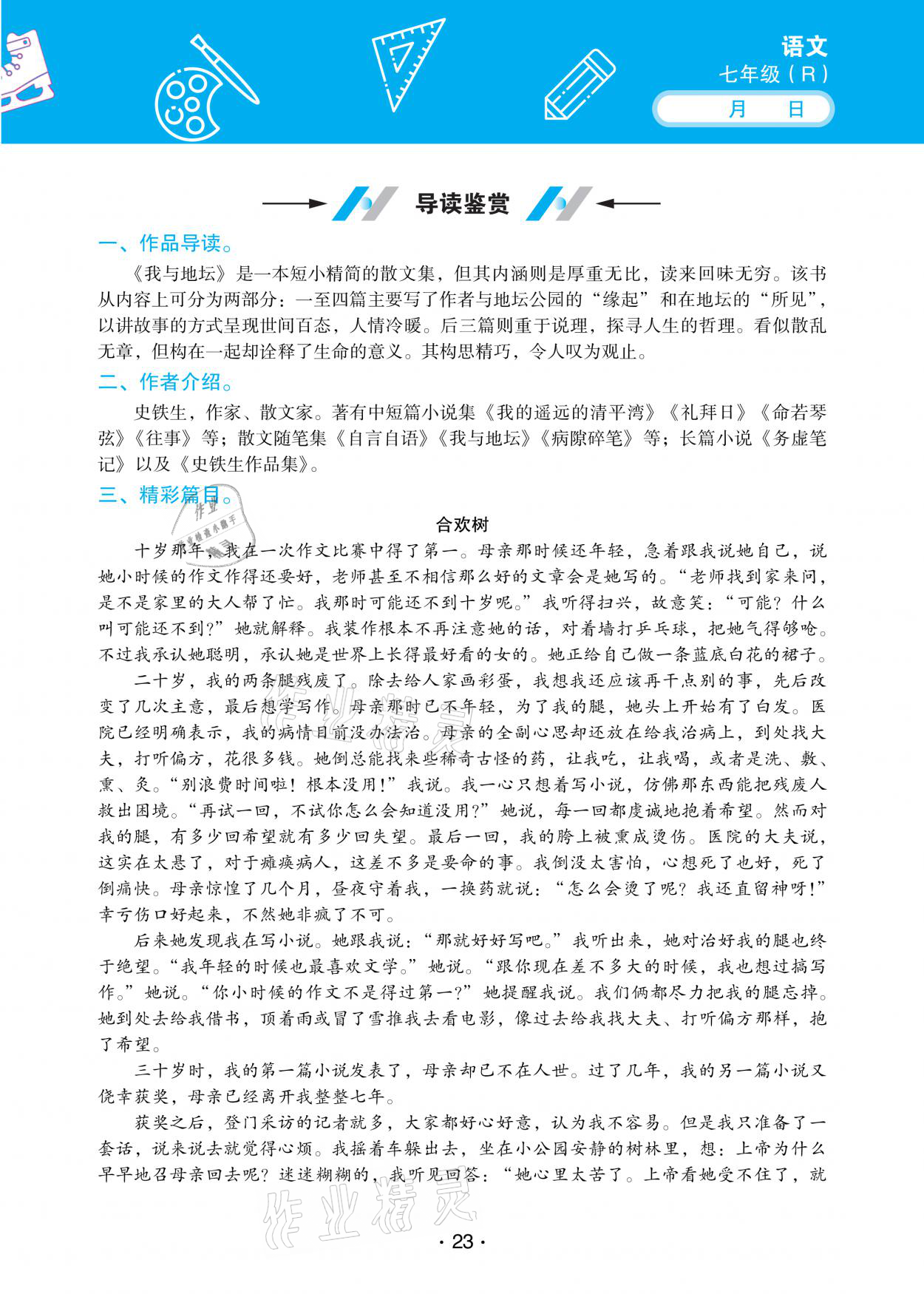 注:目前有些书本章节名称可能整理的还不是很完善,但都是按照顺序排列的,请同学们按照顺序仔细查找。练习册 2021年优佳学案寒假活动七年级语文人教版 答案主要是用来给同学们做完题方便对答案用的,请勿直接抄袭。