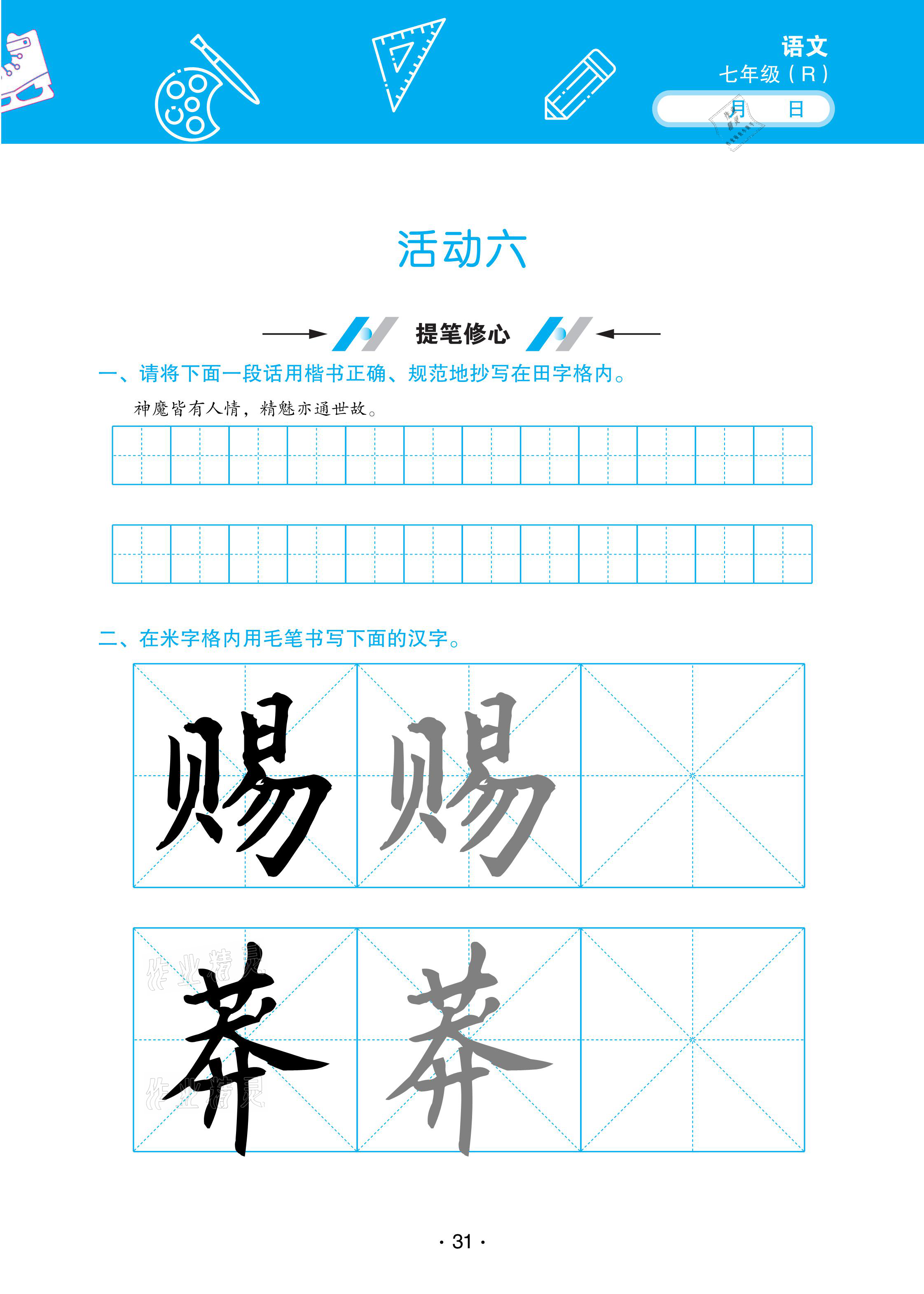 2021年优佳学案寒假活动七年级语文人教版