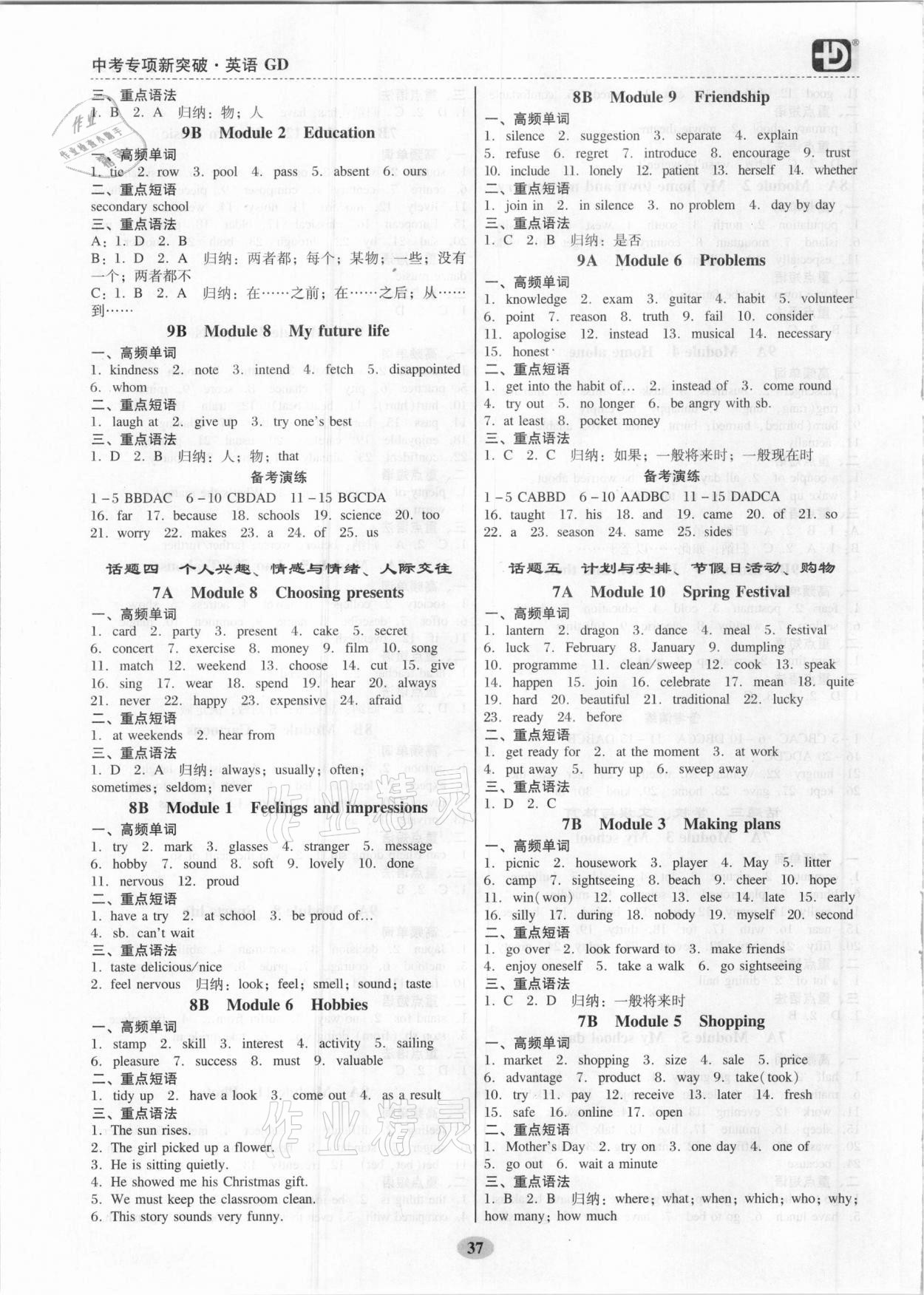 注:目前有些书本章节名称可能整理的还不是很完善,但都是按照顺序排列的,请同学们按照顺序仔细查找。练习册 2021年中考专项新突破英语广东专版 答案主要是用来给同学们做完题方便对答案用的,请勿直接抄袭。