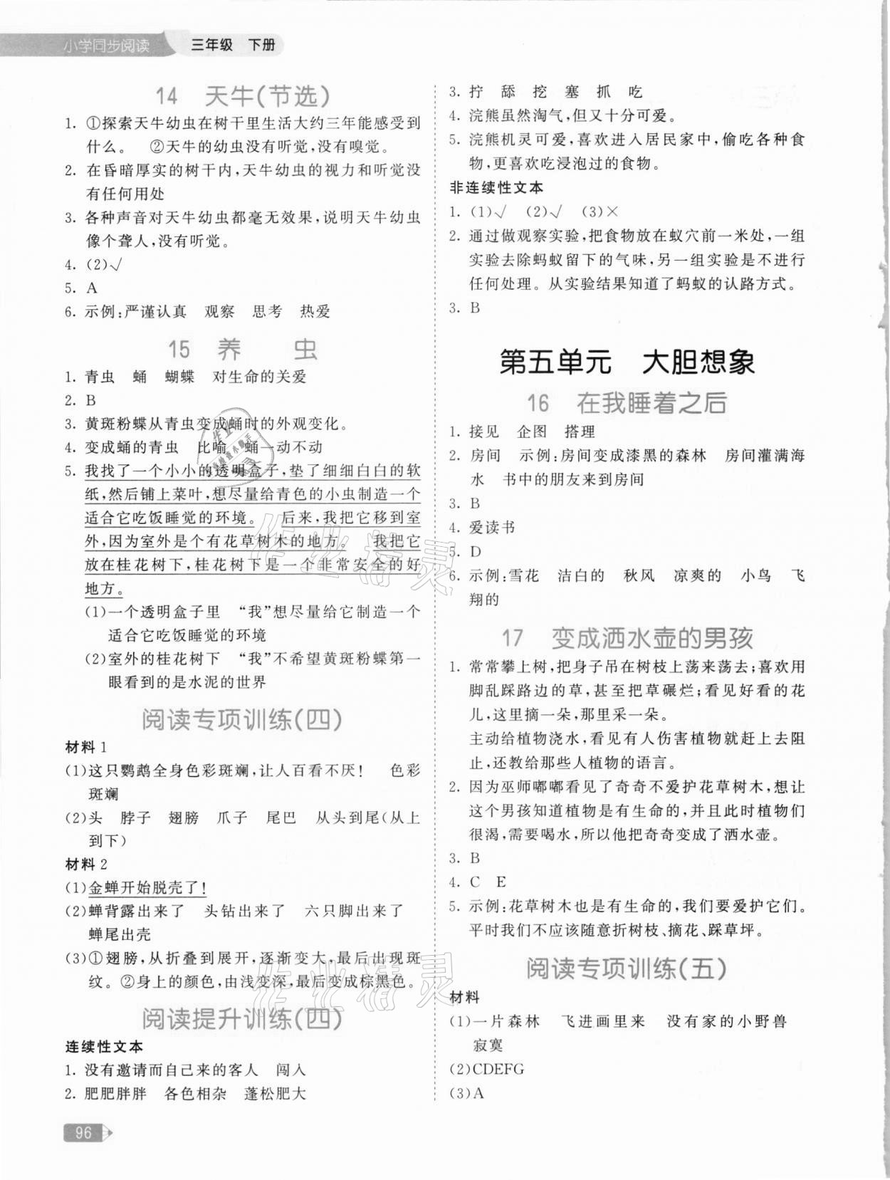 注:目前有些书本章节名称可能整理的还不是很完善,但都是按照顺序排列的,请同学们按照顺序仔细查找。练习册 2021年53天天练小学同步阅读三年级下册 答案主要是用来给同学们做完题方便对答案用的,请勿直接抄袭。