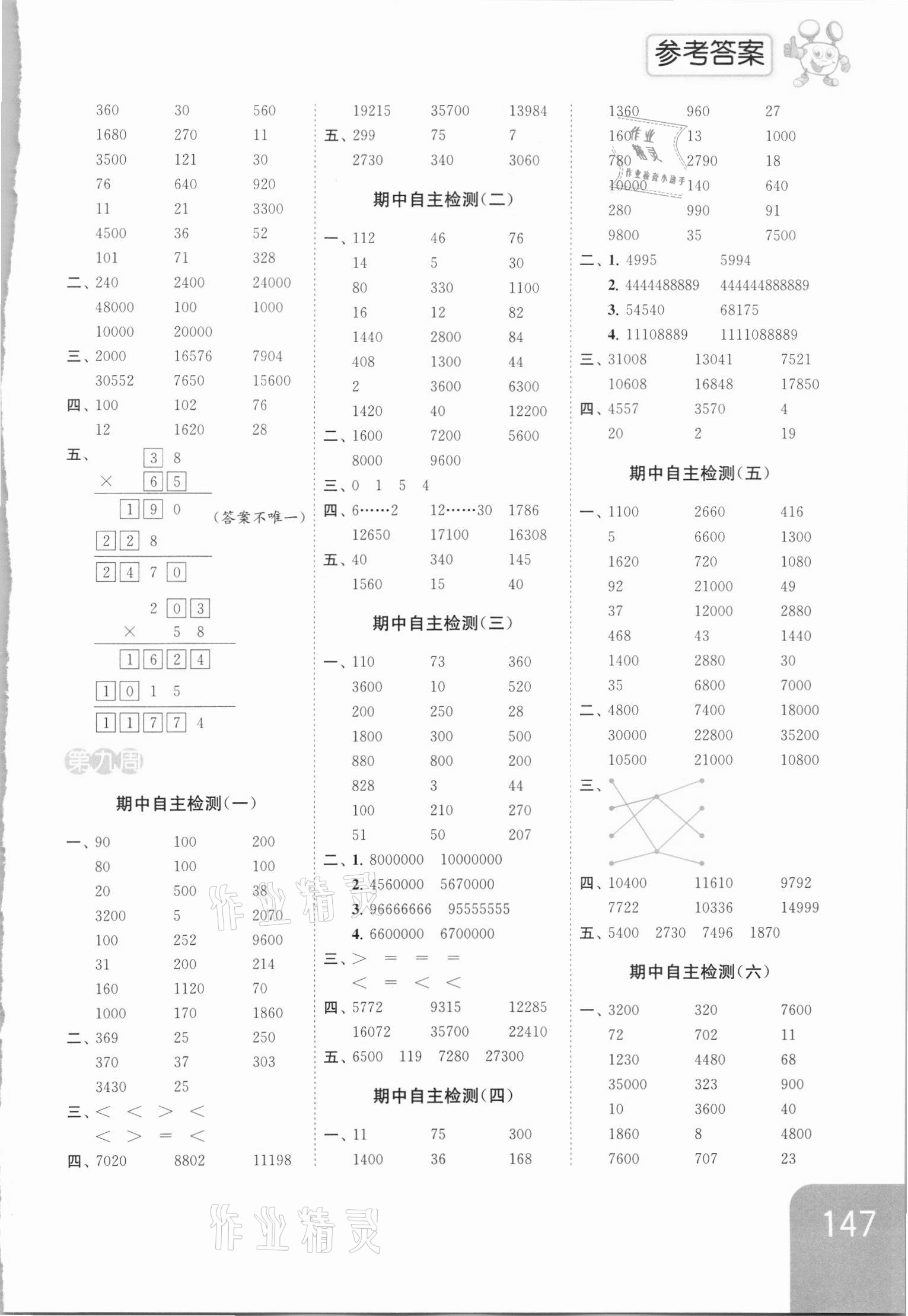 2021年亮点给力计算天天练四年级数学下册苏教版