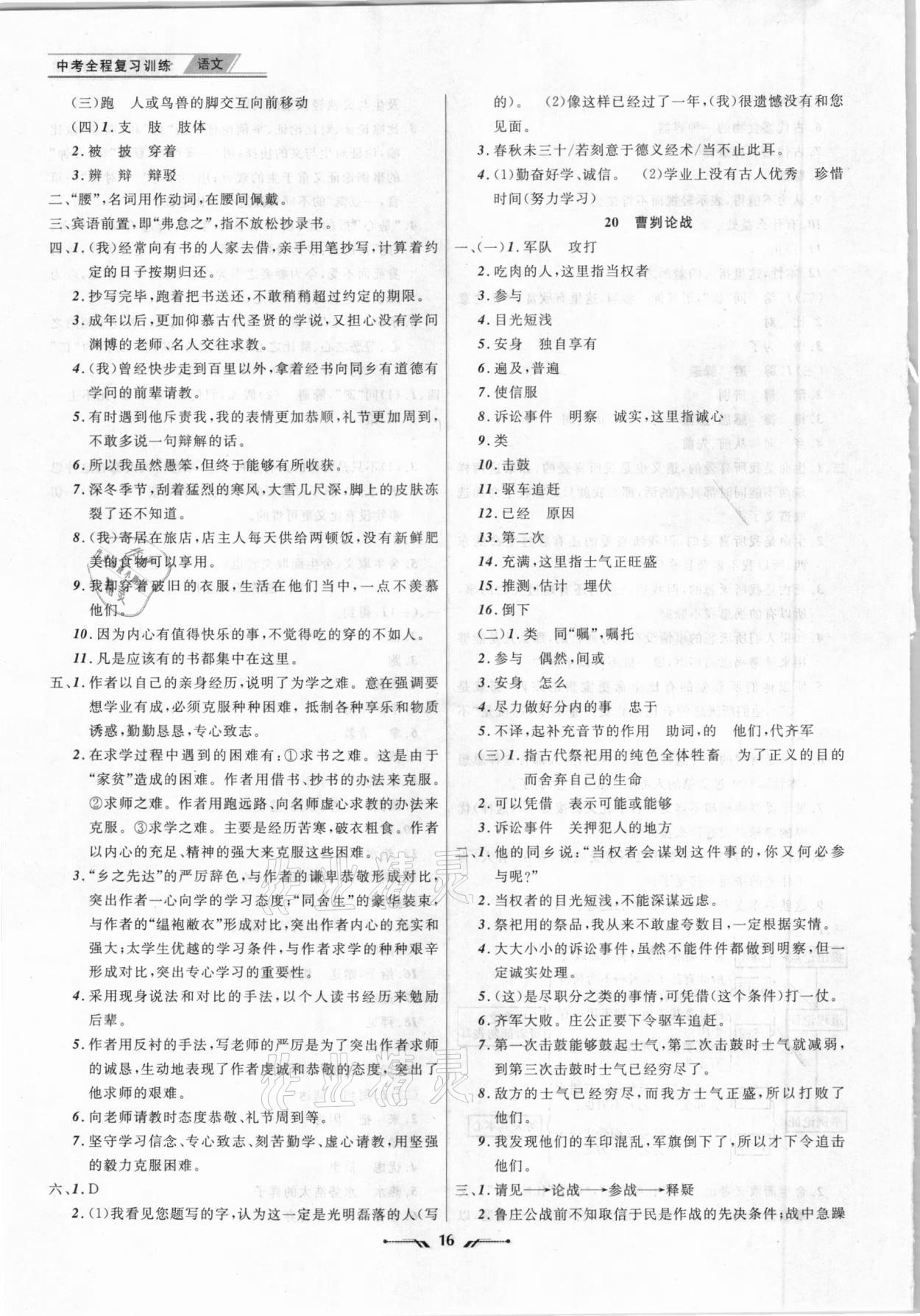 注:目前有些书本章节名称可能整理的还不是很完善,但都是按照顺序排列的,请同学们按照顺序仔细查找。练习册 2021年中考全程复习训练语文丹东专版 答案主要是用来给同学们做完题方便对答案用的,请勿直接抄袭。