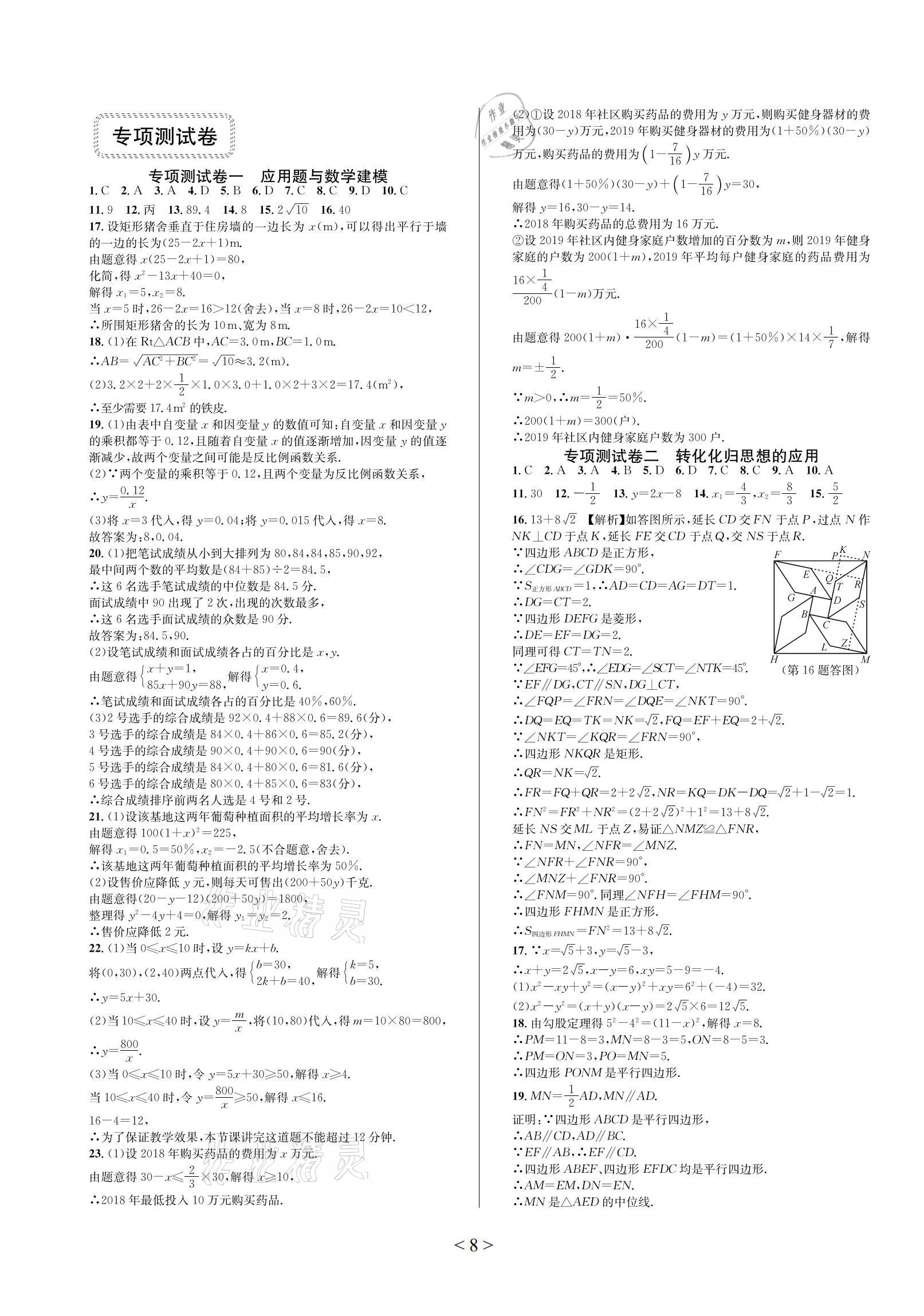 注:目前有些书本章节名称可能整理的还不是很完善,但都是按照顺序排列的,请同学们按照顺序仔细查找。练习册 2021年全优单元同步测试卷八年级数学下册浙教版 答案主要是用来给同学们做完题方便对答案用的,请勿直接抄袭。